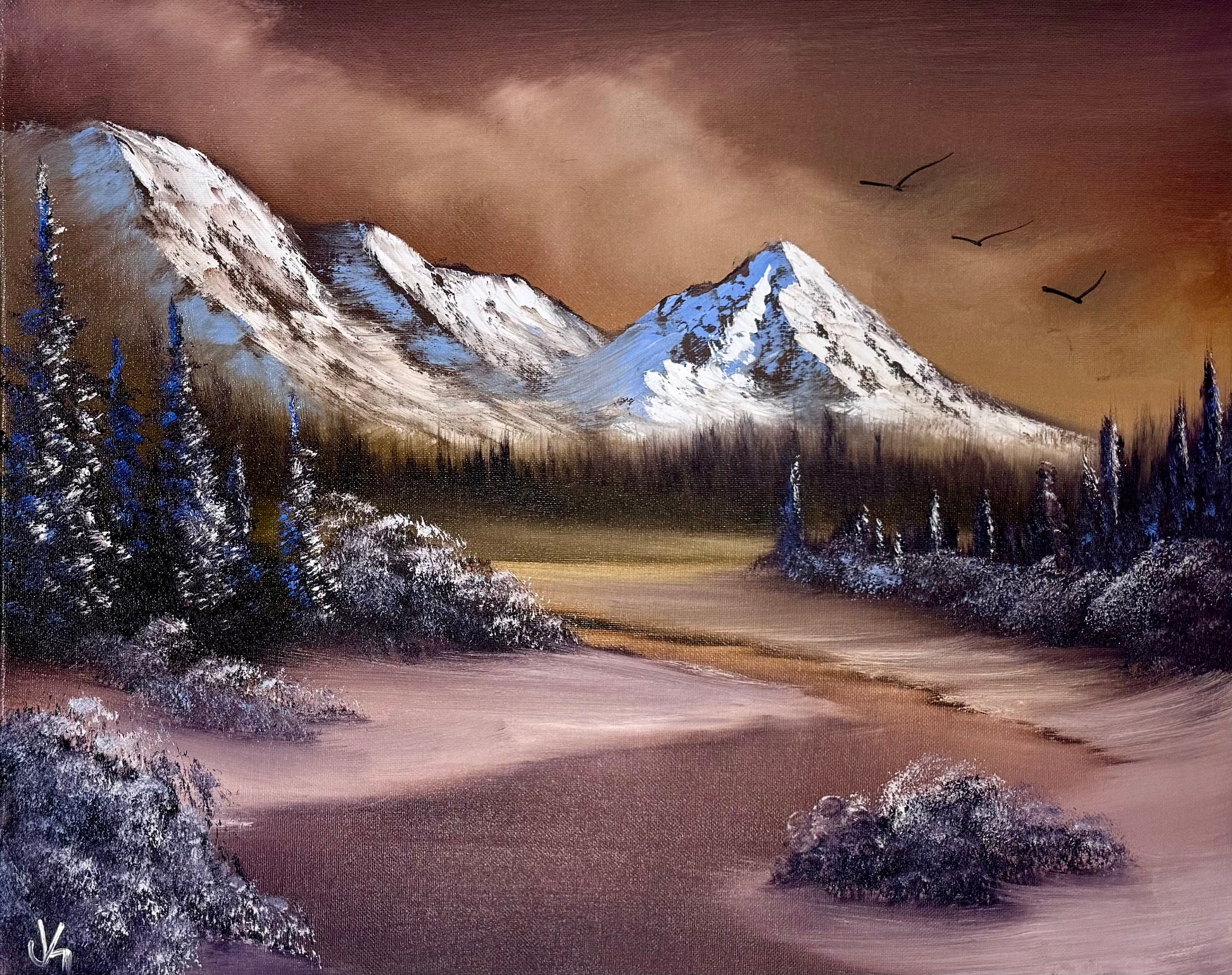 Painting #2270 - 16x20" Canvas - Mountain River Valley painted 2-5-26