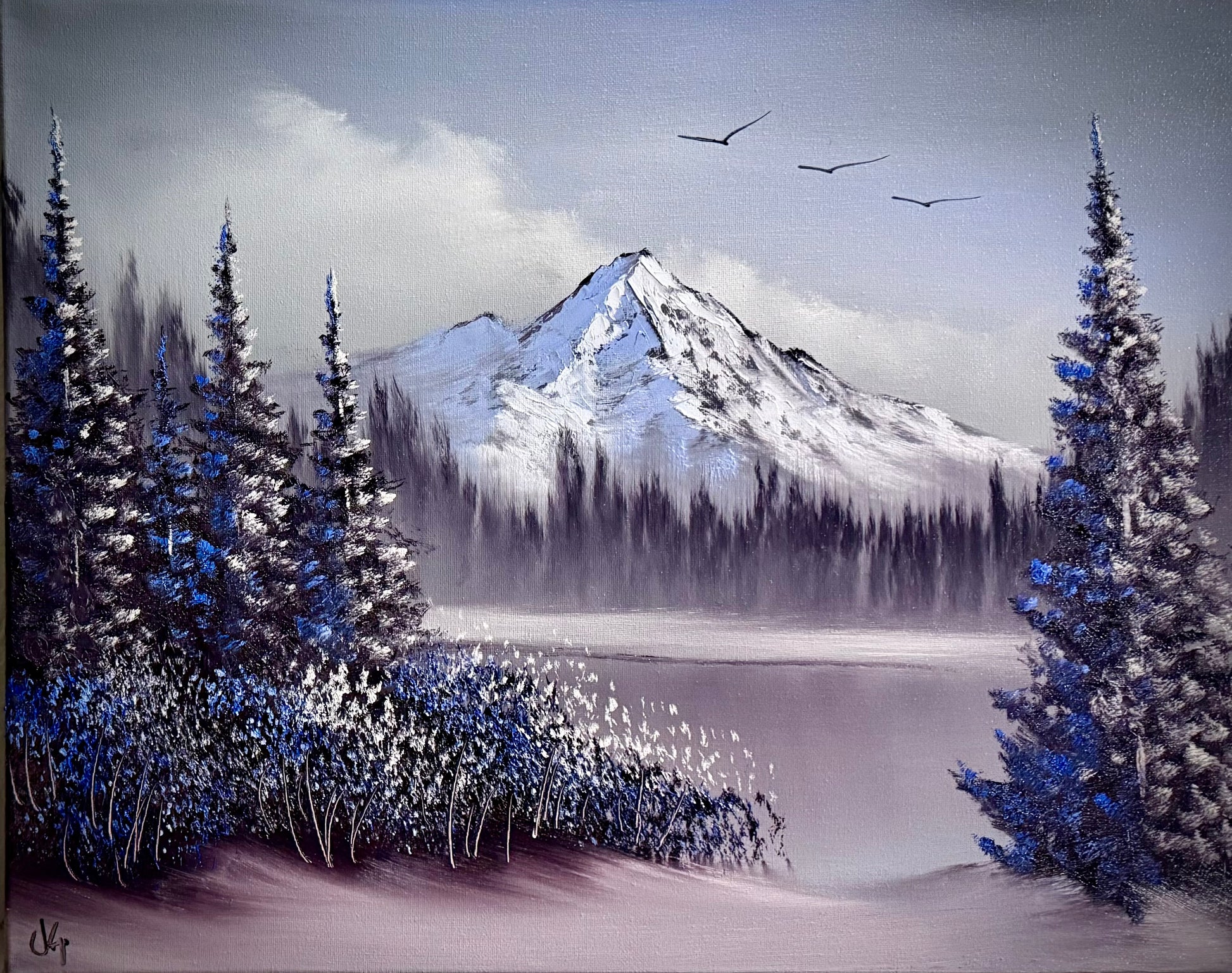 Painting #2211 - 16x20" Canvas - Black and White Mt Hood painted 12-30-25