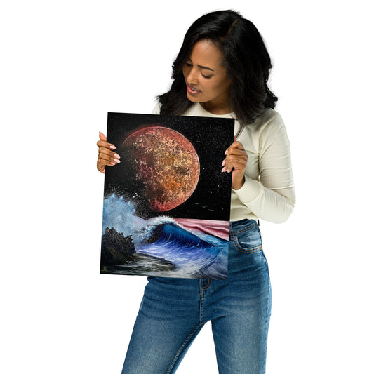 Poster Print - Full Moon Seascape with Crashing Waves by PaintWithJosh