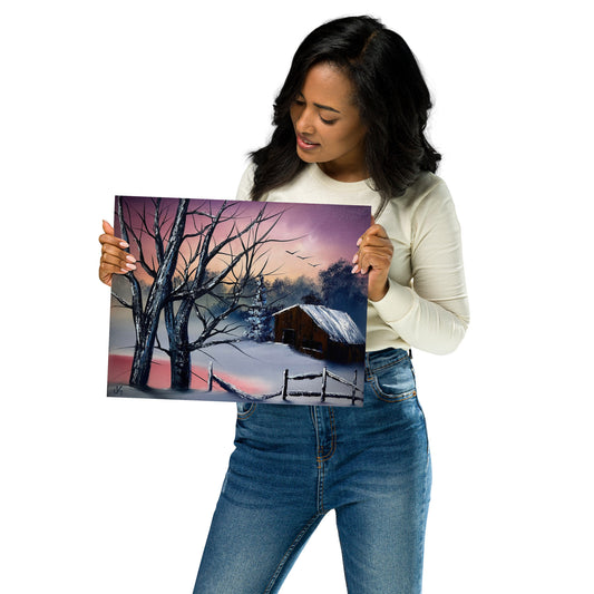 Poster Print - Sunset Winter Cabin Landscape by PaintWithJosh