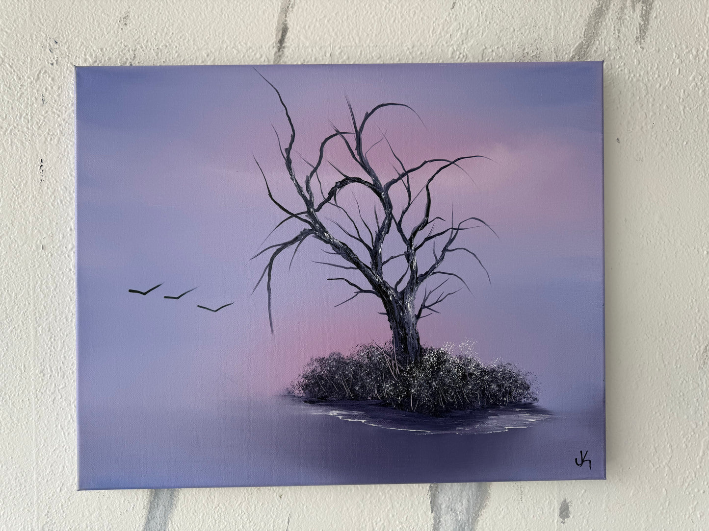 Painting #1850 - 16x20" Canvas - Solitary Tree painted 5-17-25