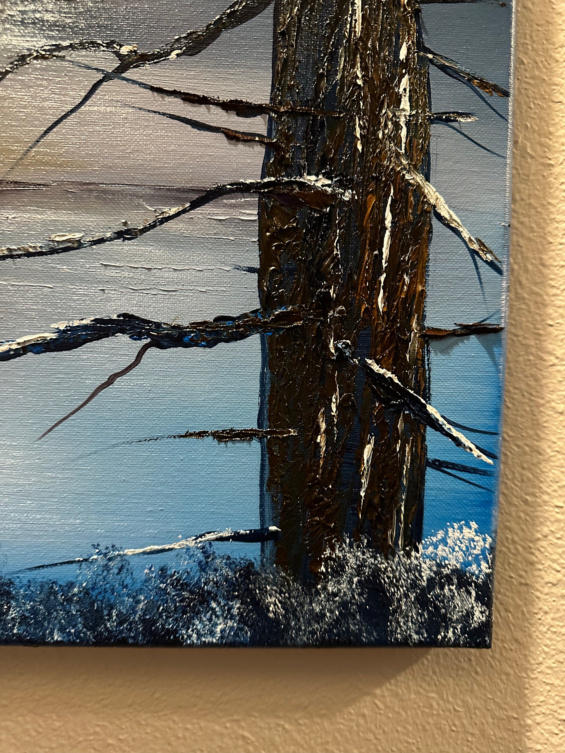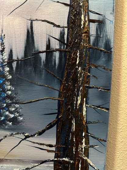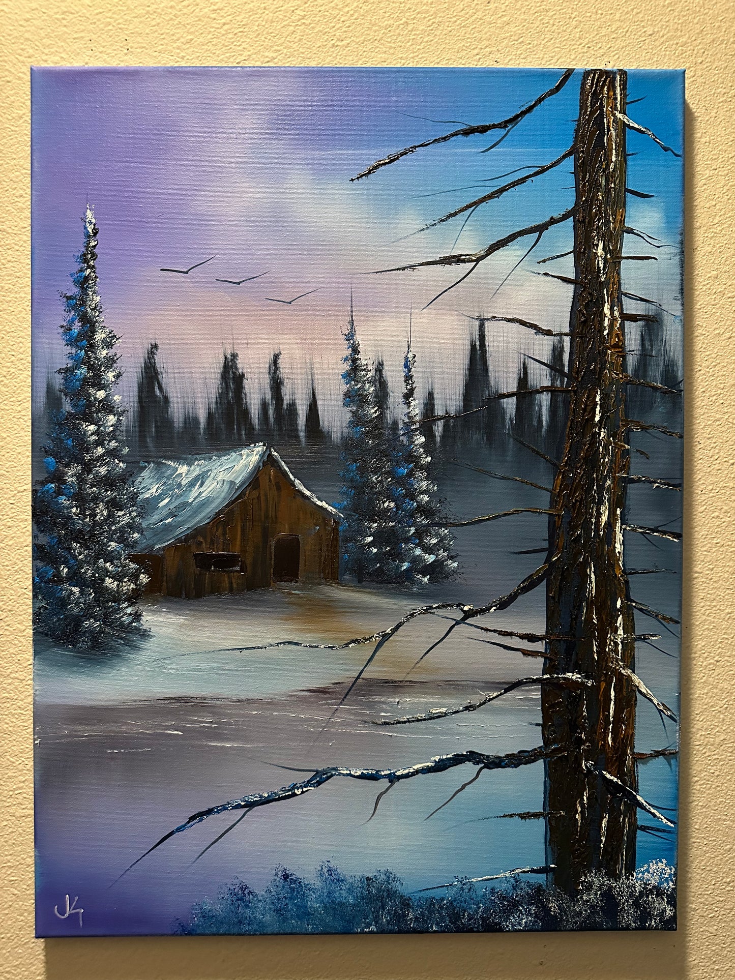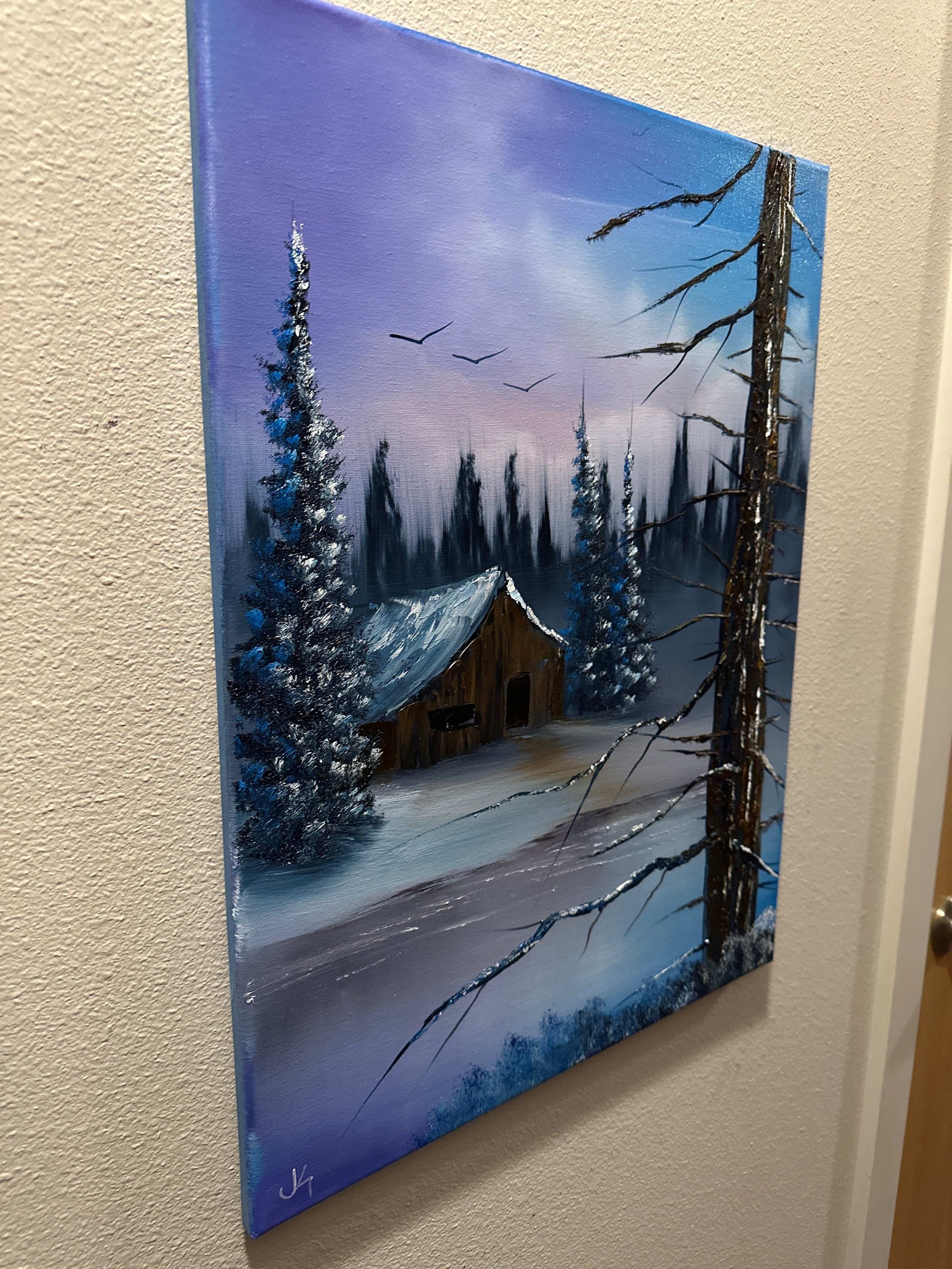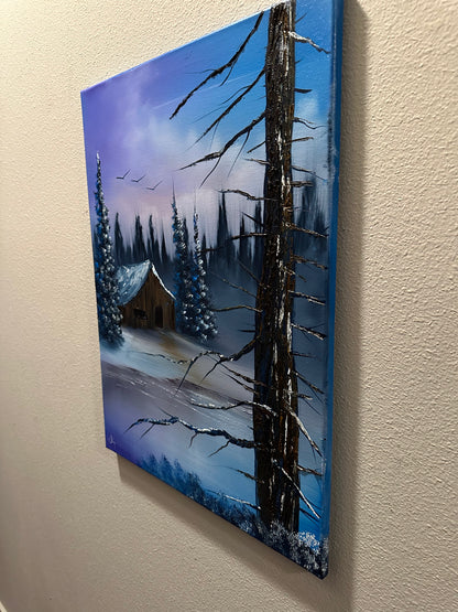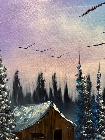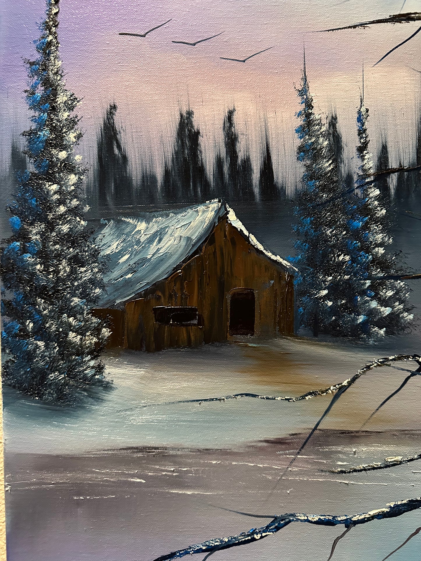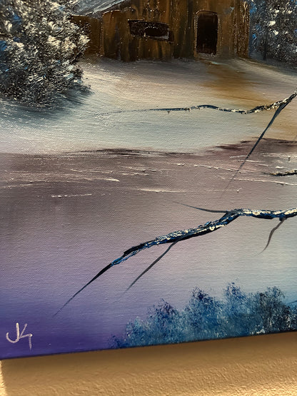 Painting #1532 - 18x24 Canvas - Winter Cabin Landscape