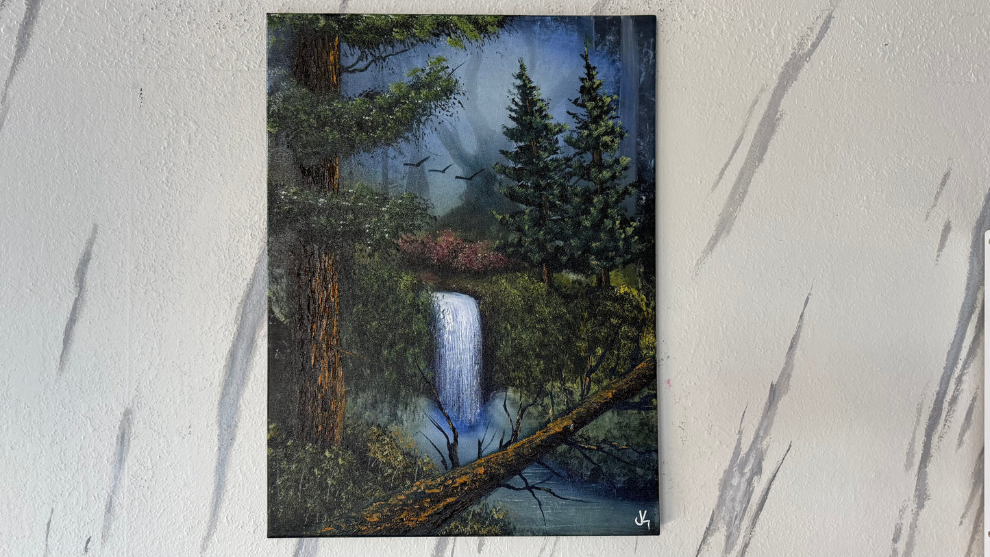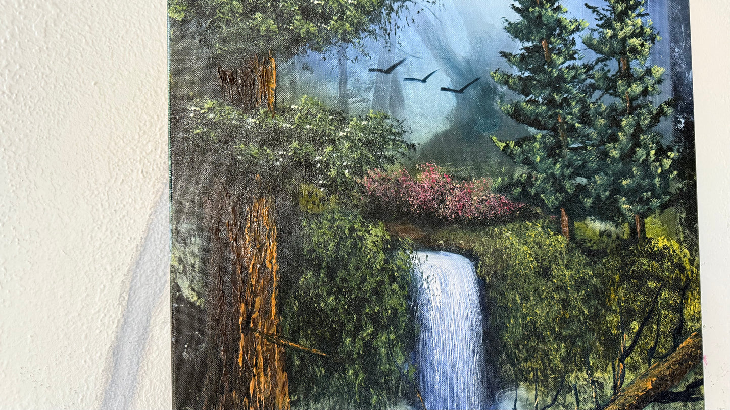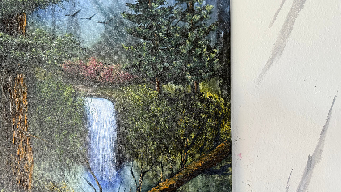 Painting #1958 - 18x24" Canvas - Forest Waterfall Landscape painted 7-25-25