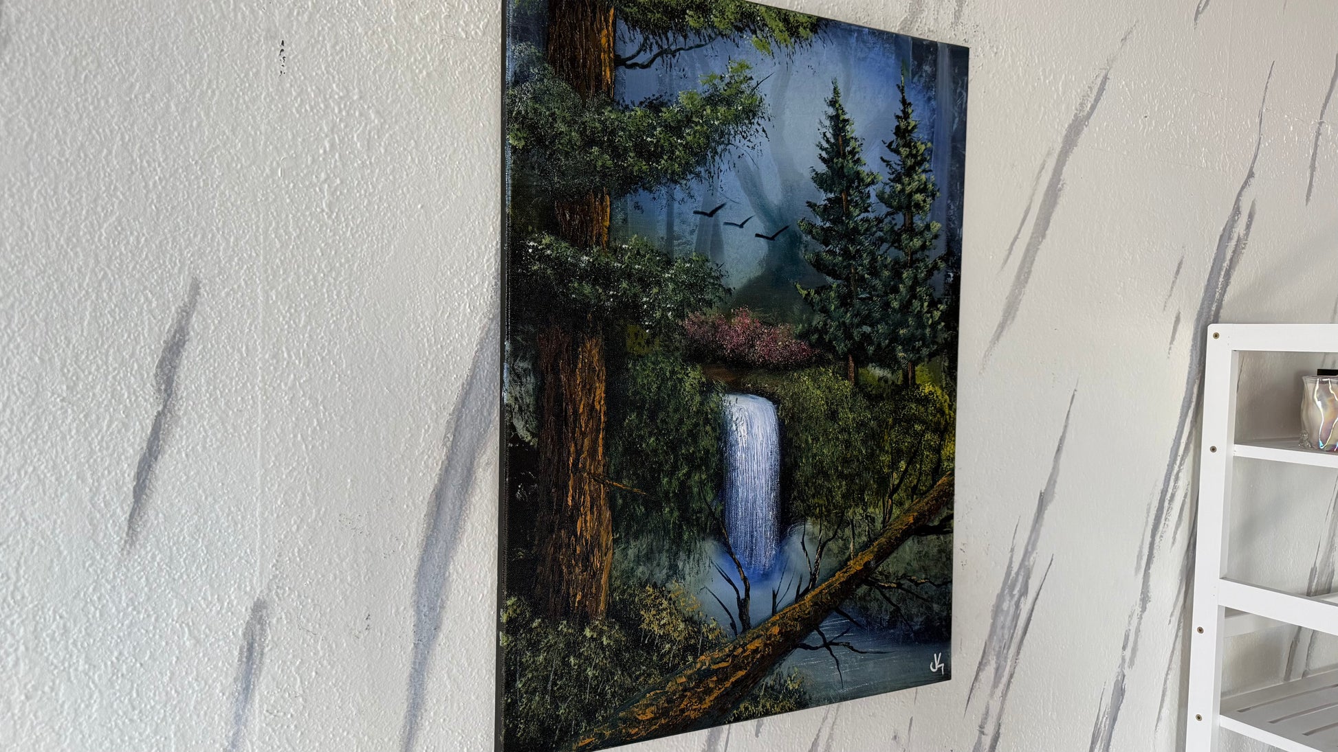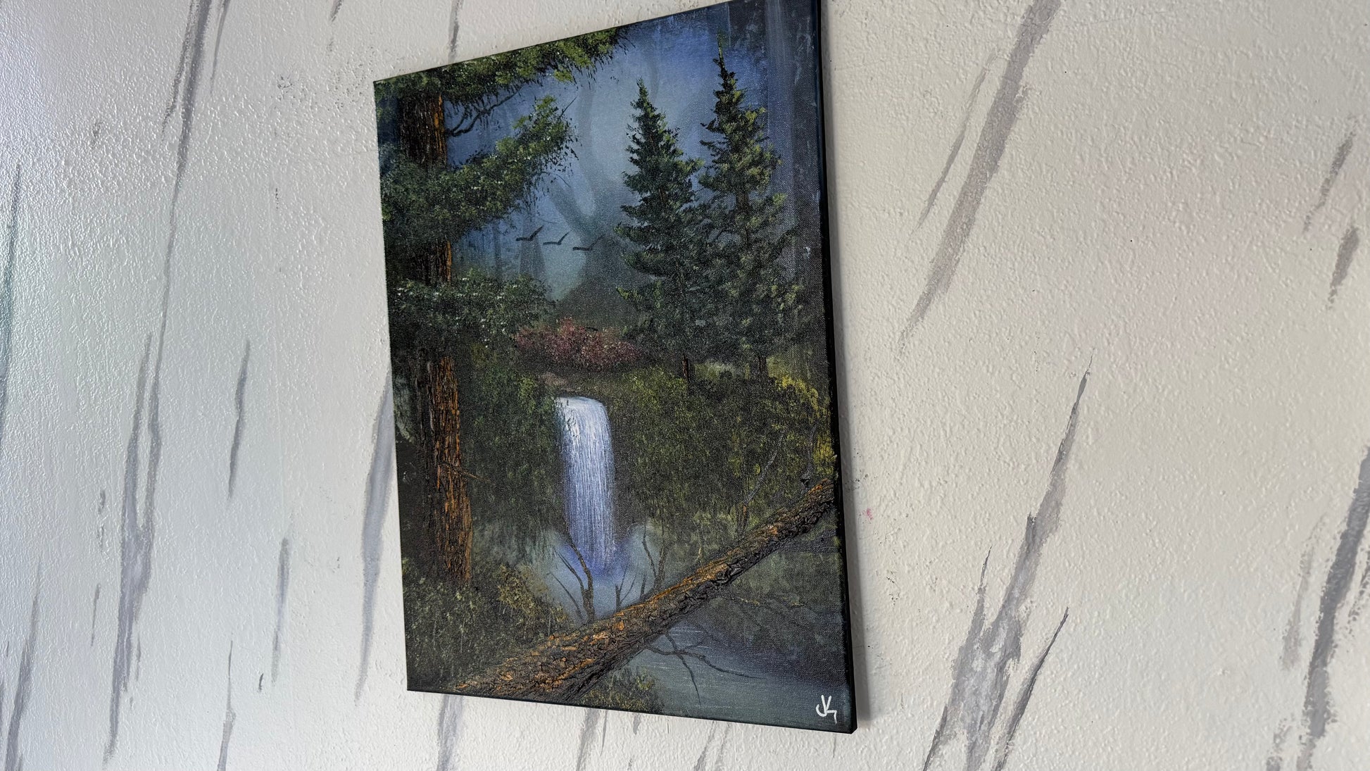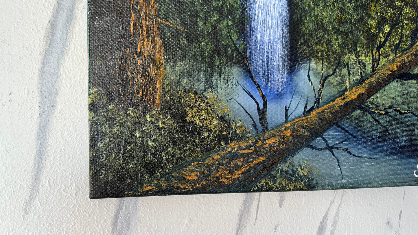 Painting #1958 - 18x24" Canvas - Forest Waterfall Landscape painted 7-25-25