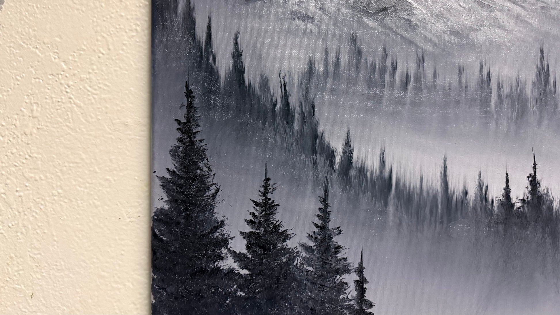 Painting #2164 - 16x20" Canvas - Black and White Mt Hood Landscape painted 11-29-25