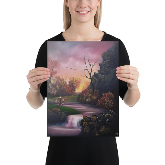 Canvas Print - The Golden Hour - Sunset Waterfall Landscape by PaintWithJosh