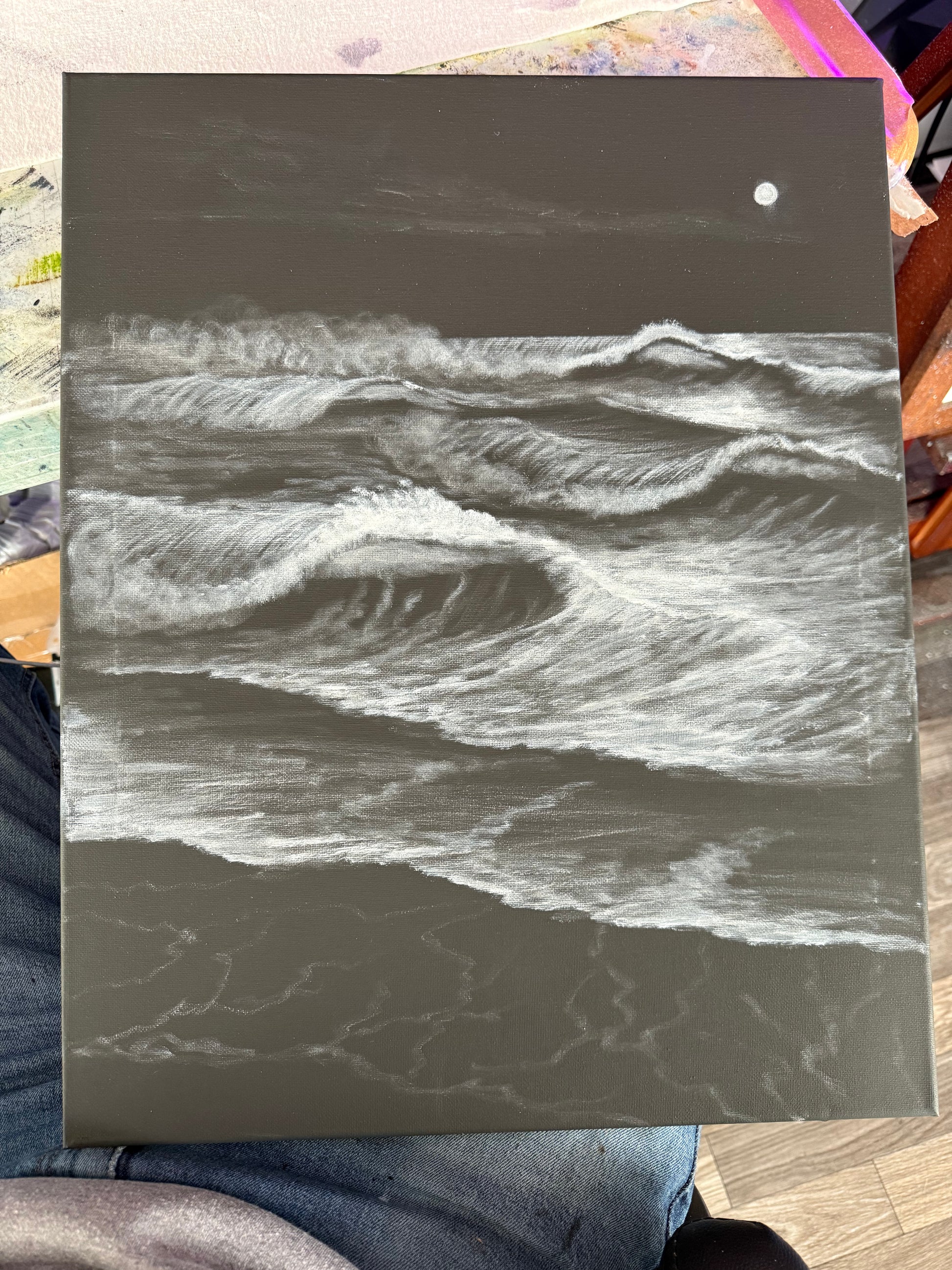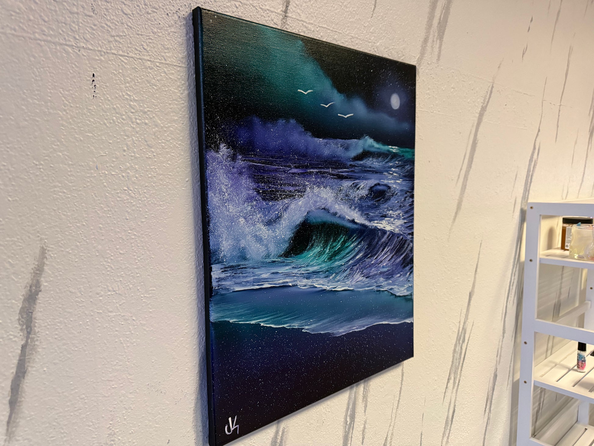 Painting #1844 - 16x20" Canvas - Crashing Waves Seascape painted 5-12-25