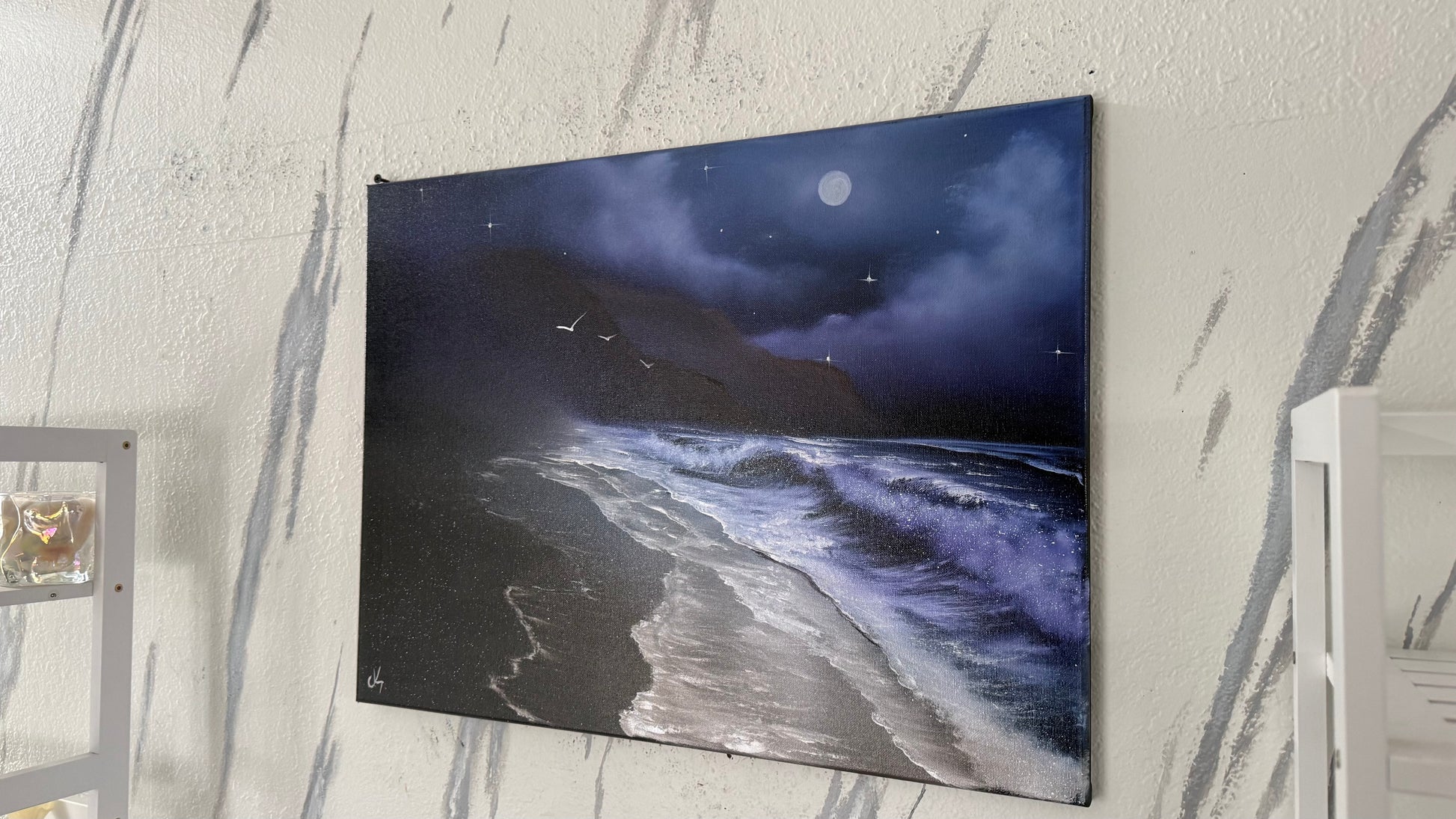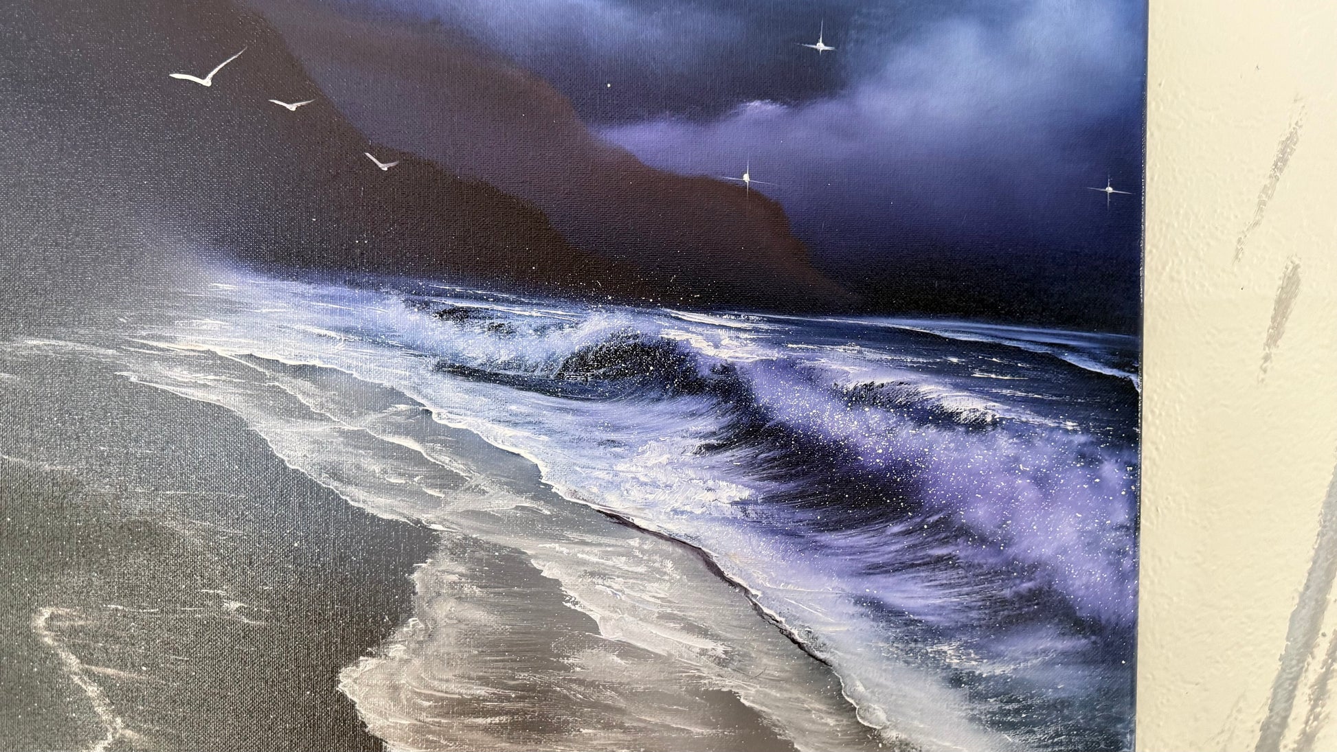 Painting #2091 - 18x24" Canvas - Oregon Coast Night Seascape painted 10-9-25