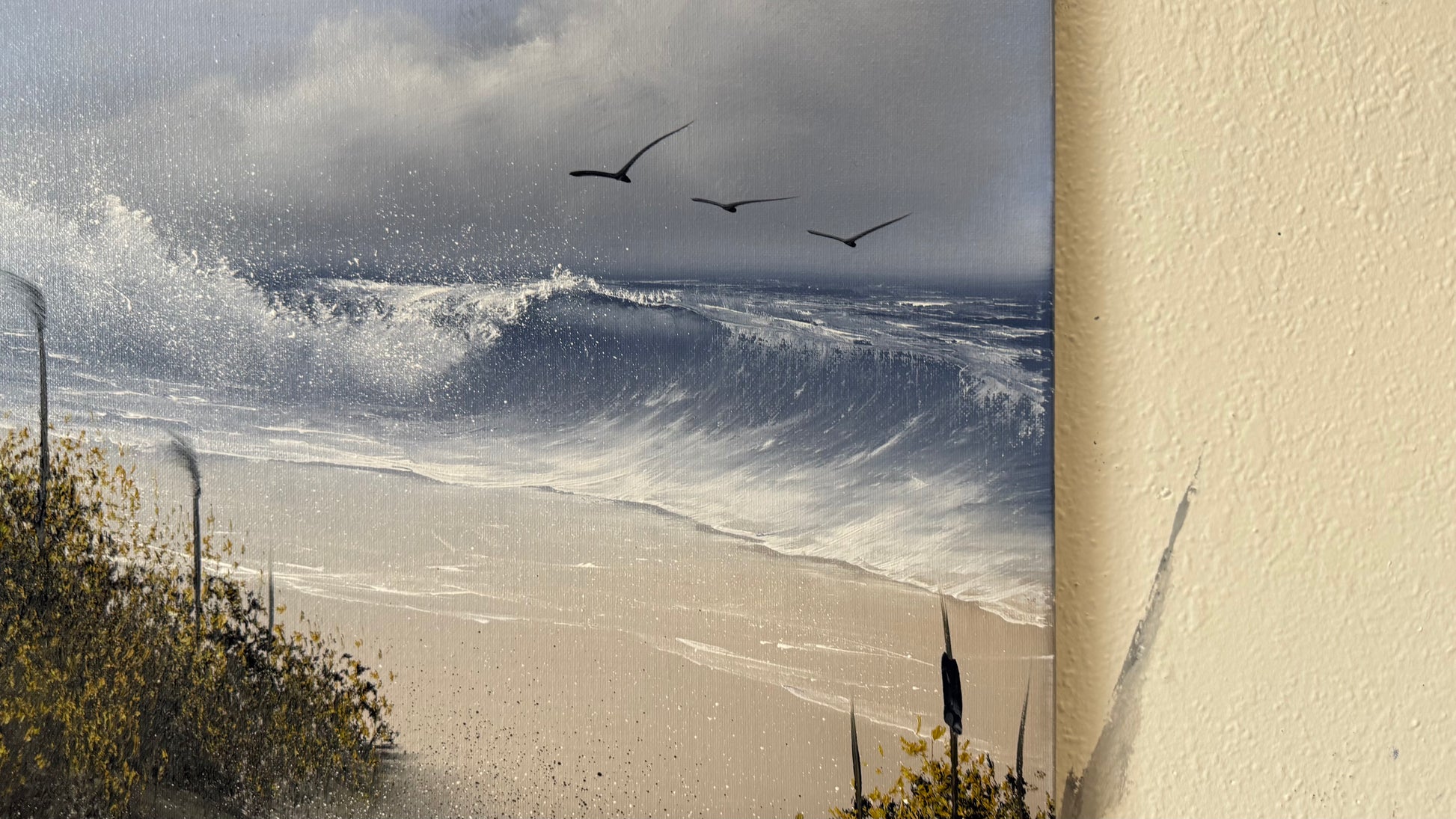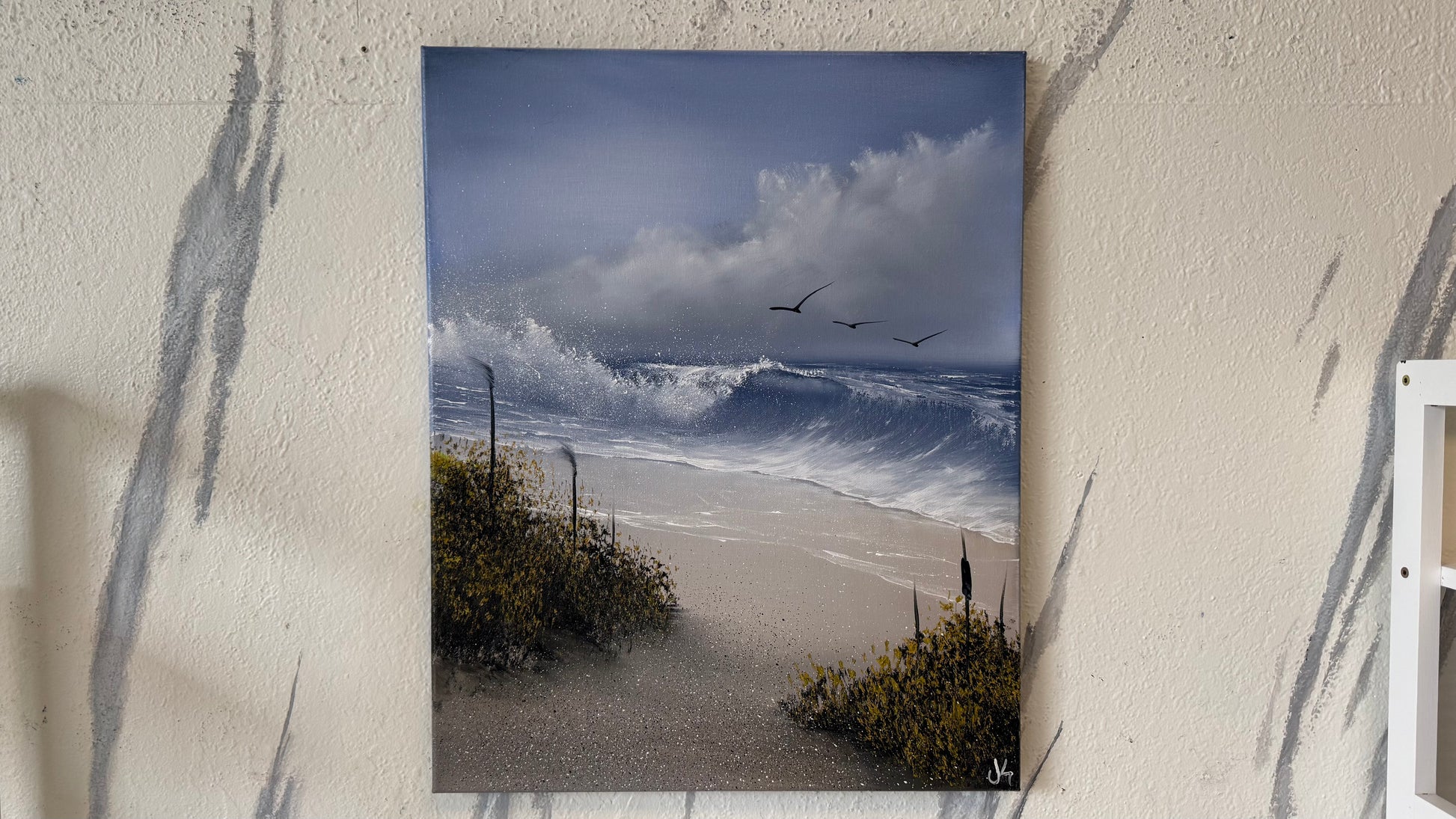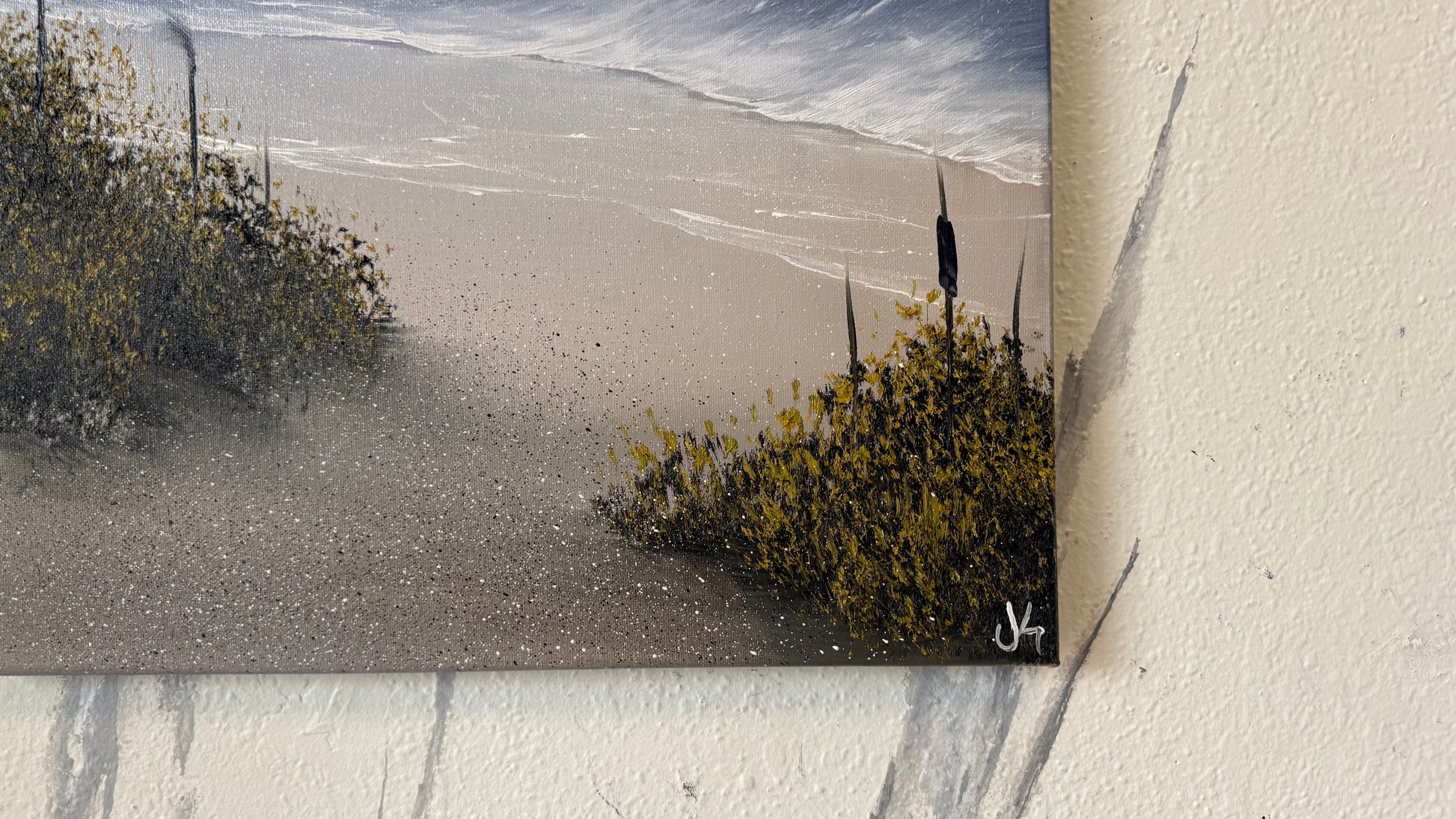 Painting #2152 - 16x20" Canvas - Cattails Seascape painted 11-18-25