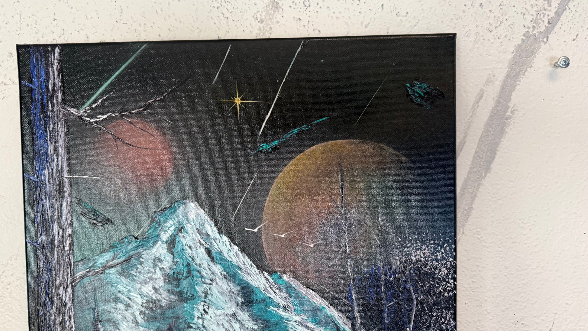 Painting #2249 - 16x20" Canvas - Space Mountain painted 1-21-26