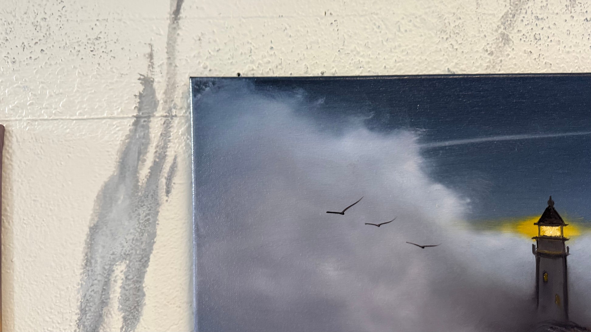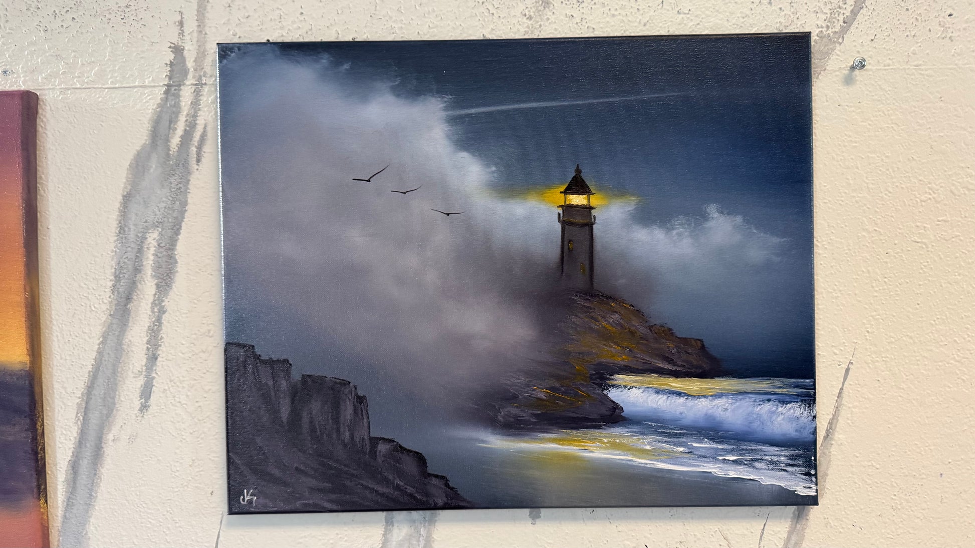 Painting #2230 - 16x20" Canvas - Lighthouse Seascape painted 1-10-26