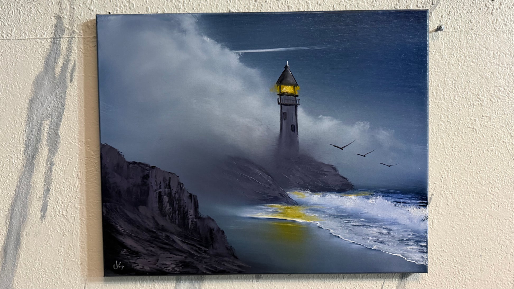Painting #2231 - 16x20" Canvas - Lighthouse Seascape painted 1-10-26