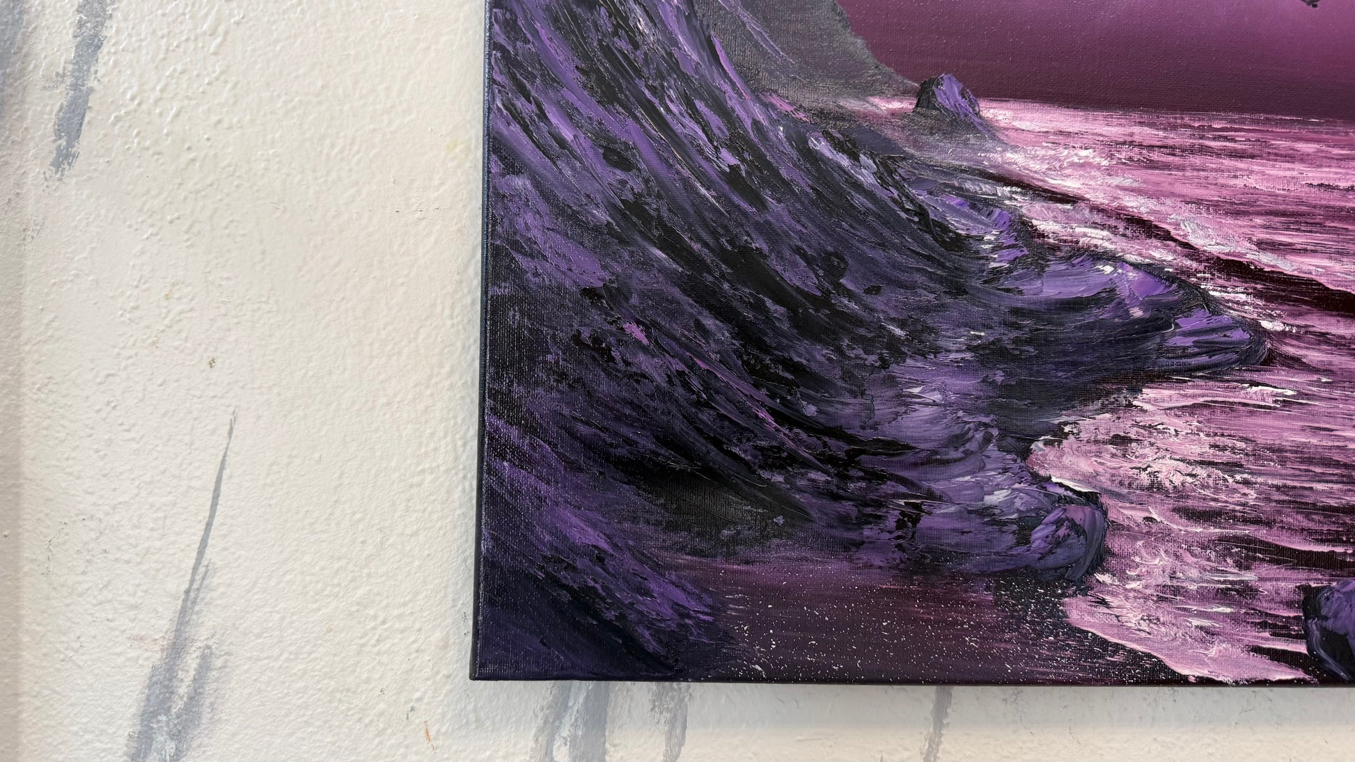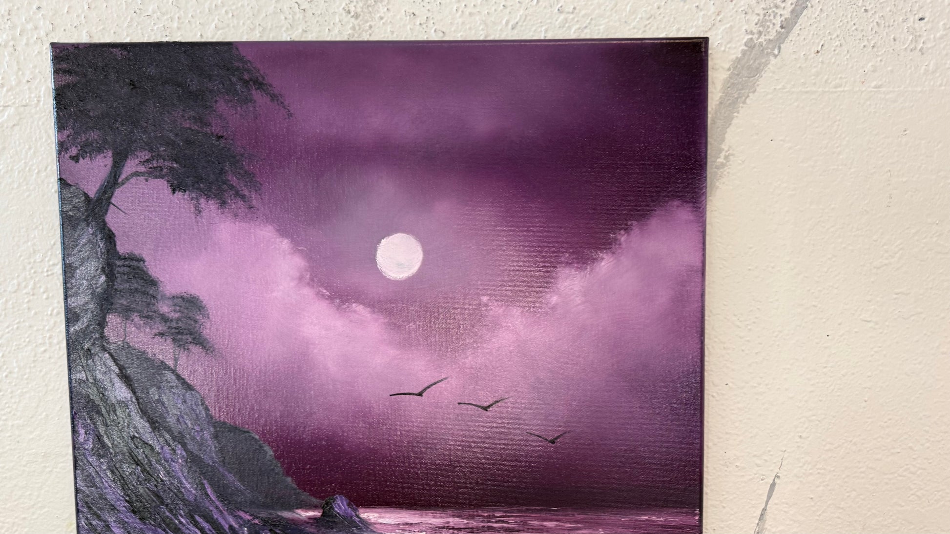 Painting #2180 - 16x20" Canvas - Full Moon Seascape painted 12-11-25