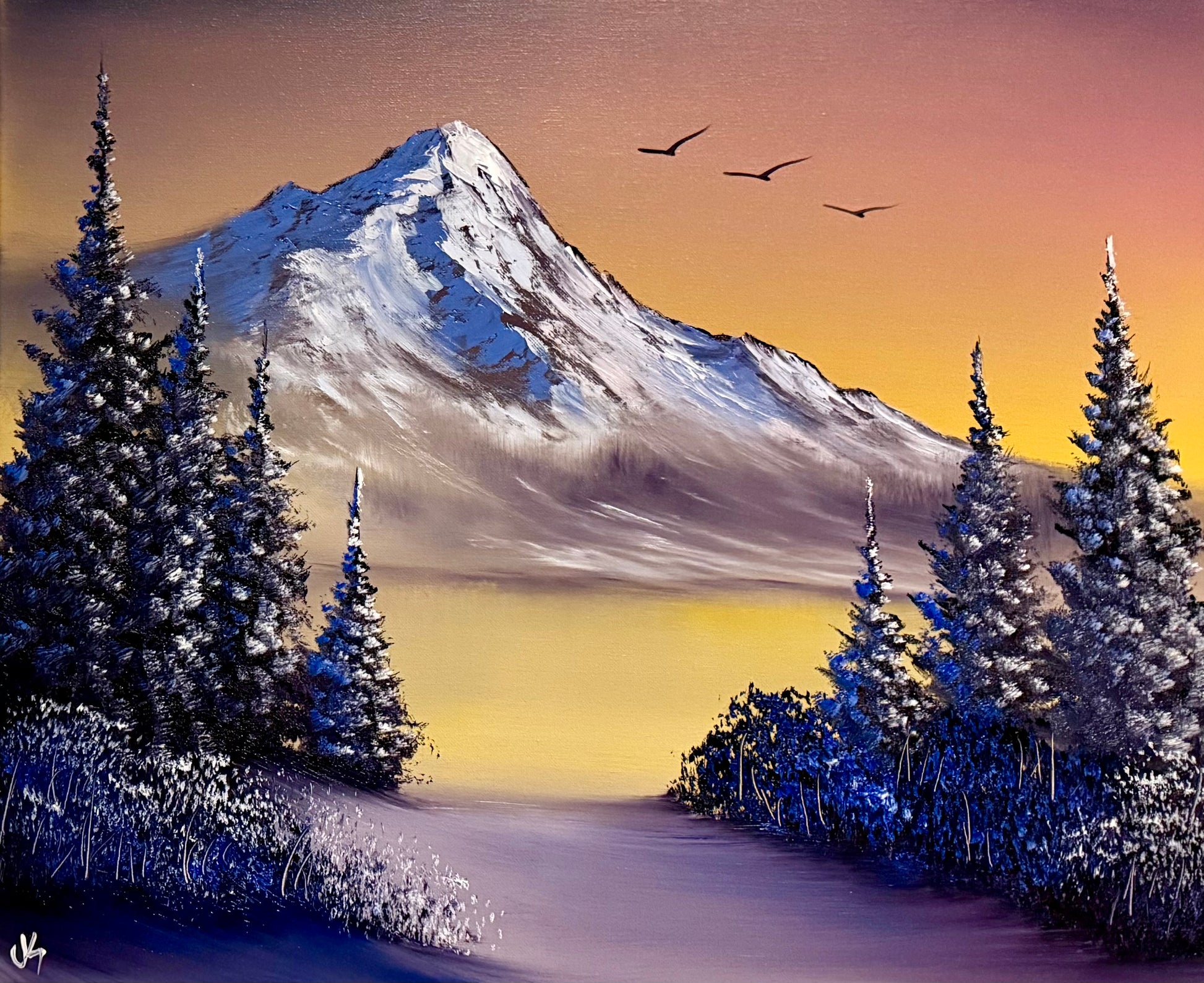 Painting #2146 - 20x24" Canvas - Sunset Mountain Landscape painted 11-14-25
