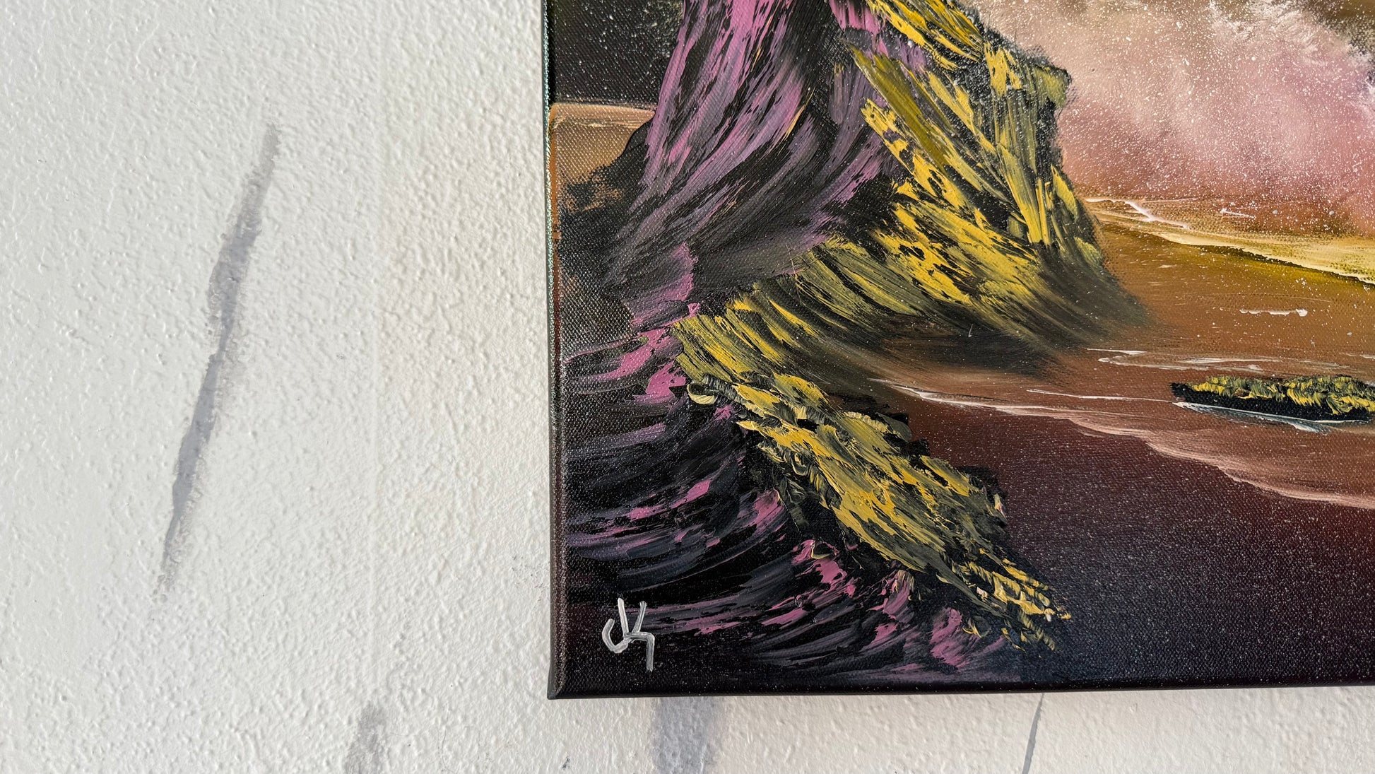 Painting #1983 - 18x24" Canvas - Aurora Mountain Seascape painted 8-8-25