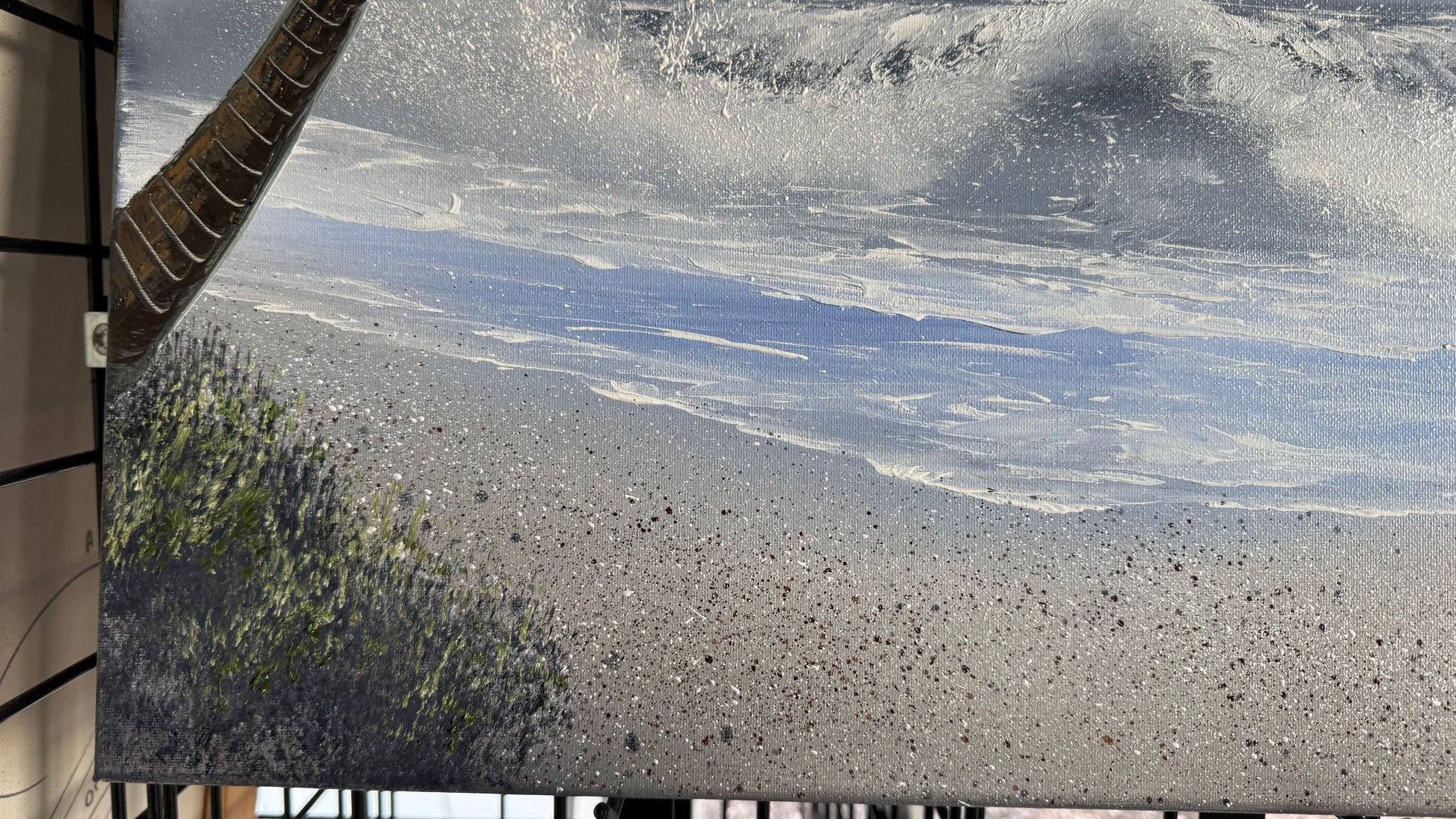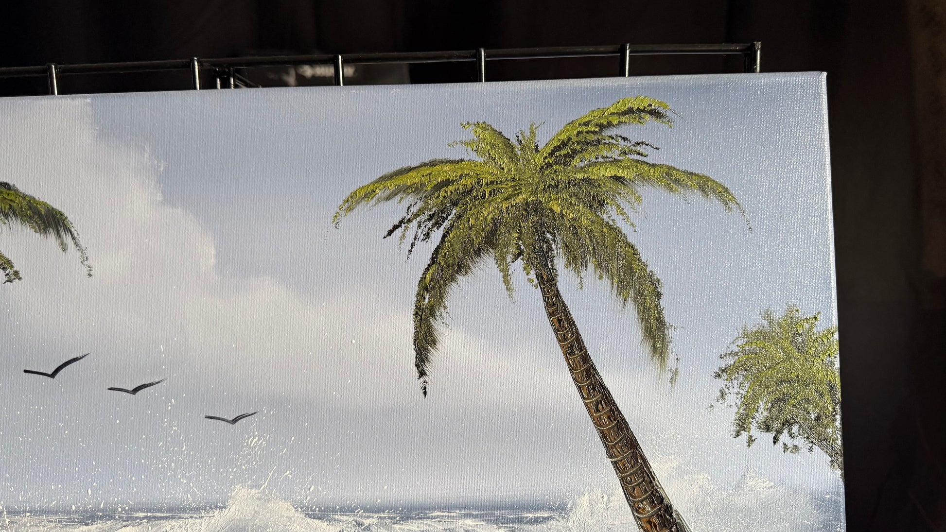 Painting #2040 - 18x24" Canvas - Tropical Seascape with Beachwood Frame included painted 9-6-25
