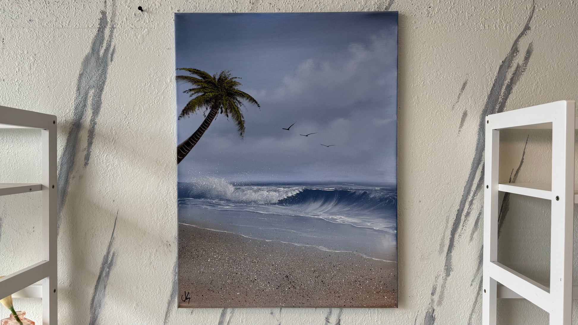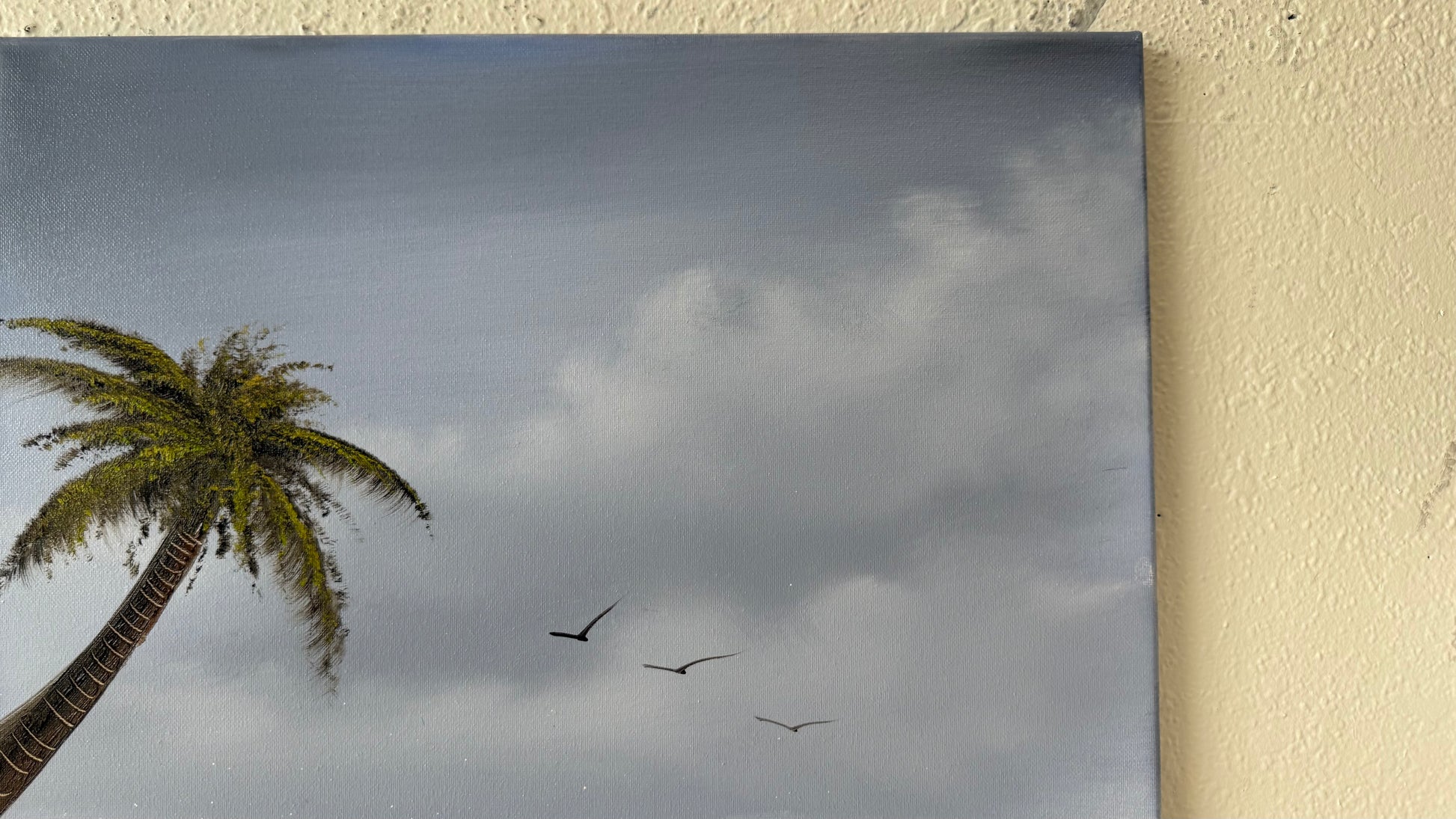Painting #2117 - 18x24" Canvas - Palm Tree Seascape painted 10-25-25