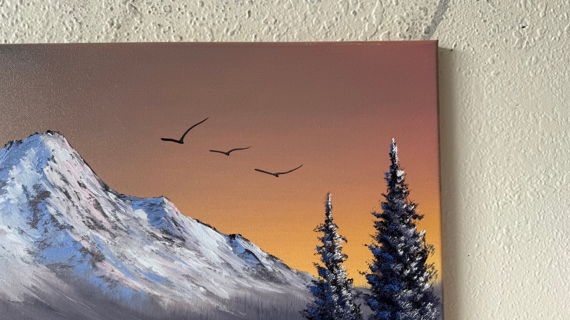 Painting #2145 - 16x20" Canvas - Christmas Tree Mountain Landscape with Fairy Lights painted 11-14-25