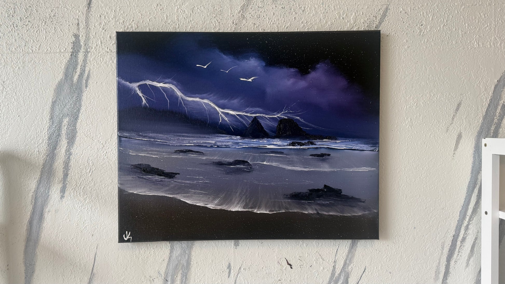 Painting #2153 - 16x20" Canvas - Night Seascape painted 11-18-25