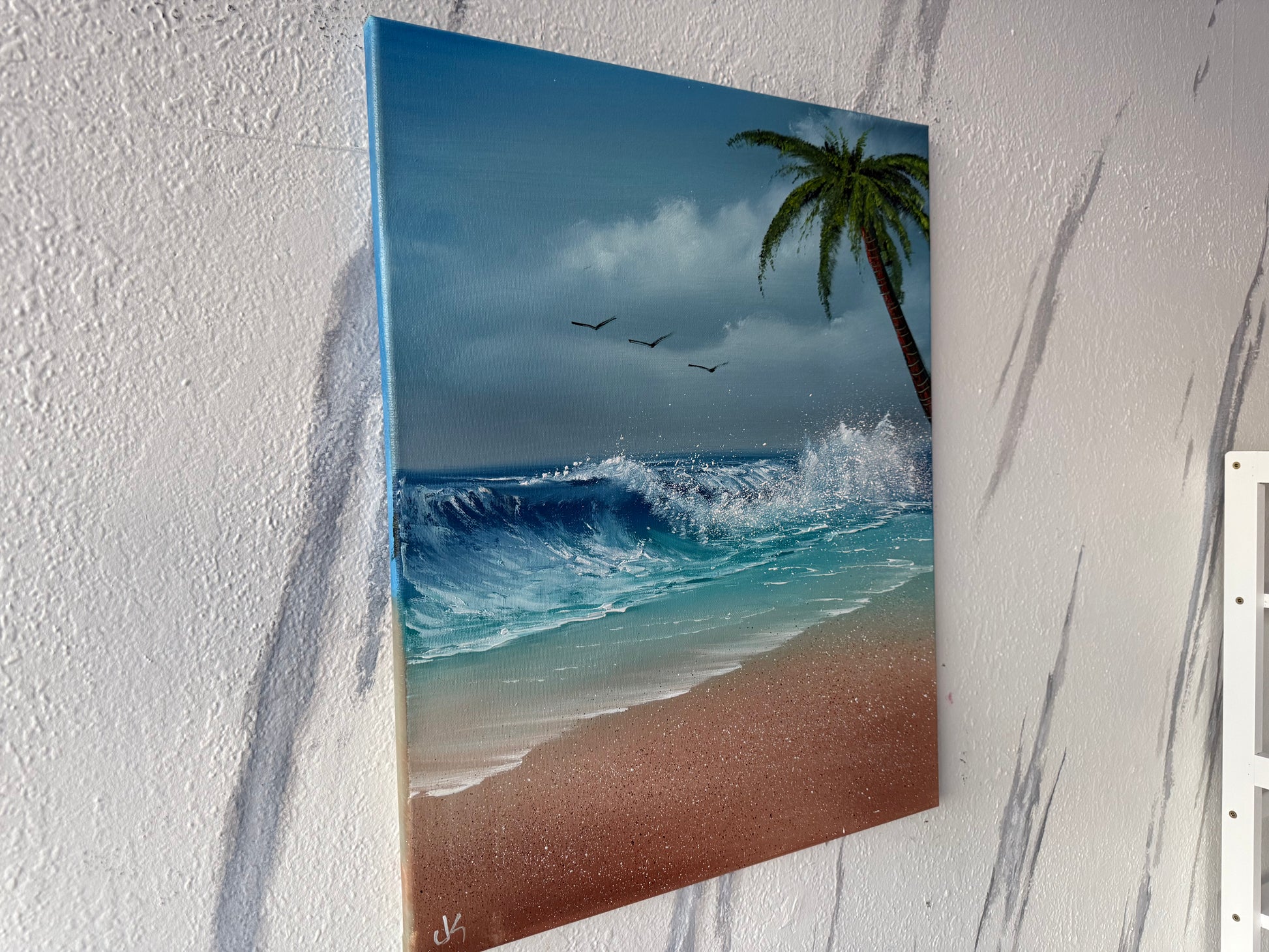 Painting #1929 - 16x20" Canvas - Tropical Seascape painted 7-7-25