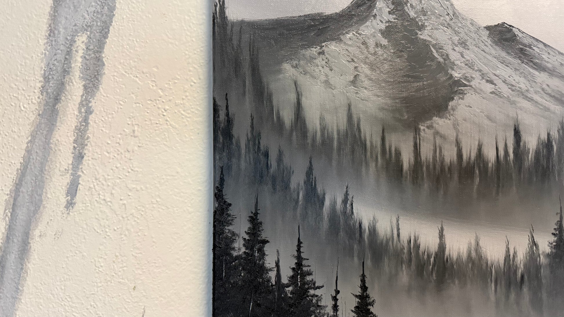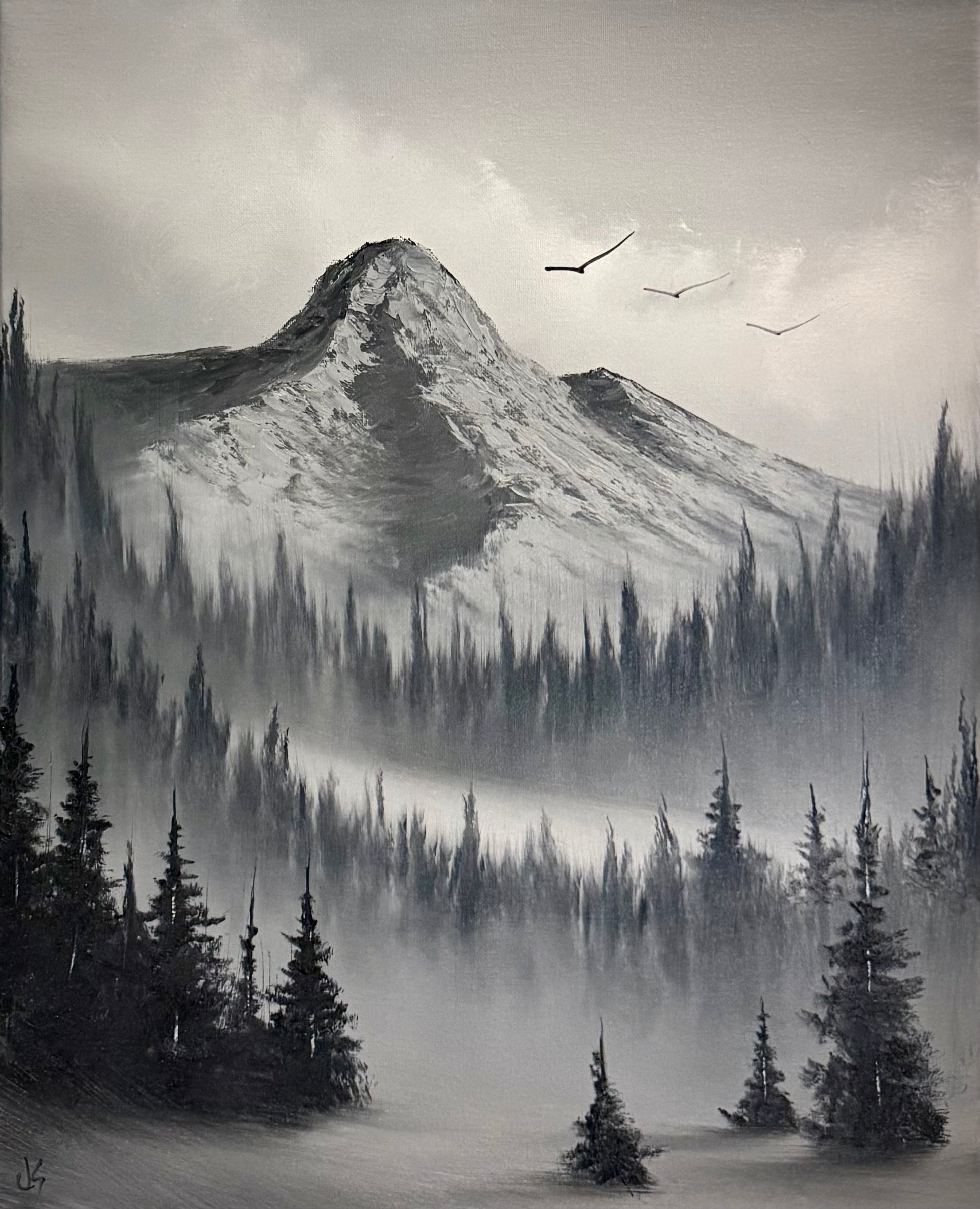 Painting #2236 - 16x20" Canvas - Black and White Mt Hood Landscape painted 1-15-26