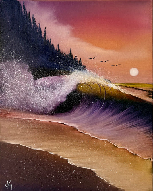 Painting #2165 - 16x20" Canvas - Sunset Seascape painted 11-26-25