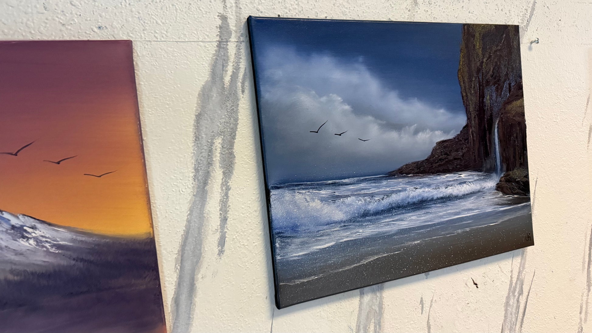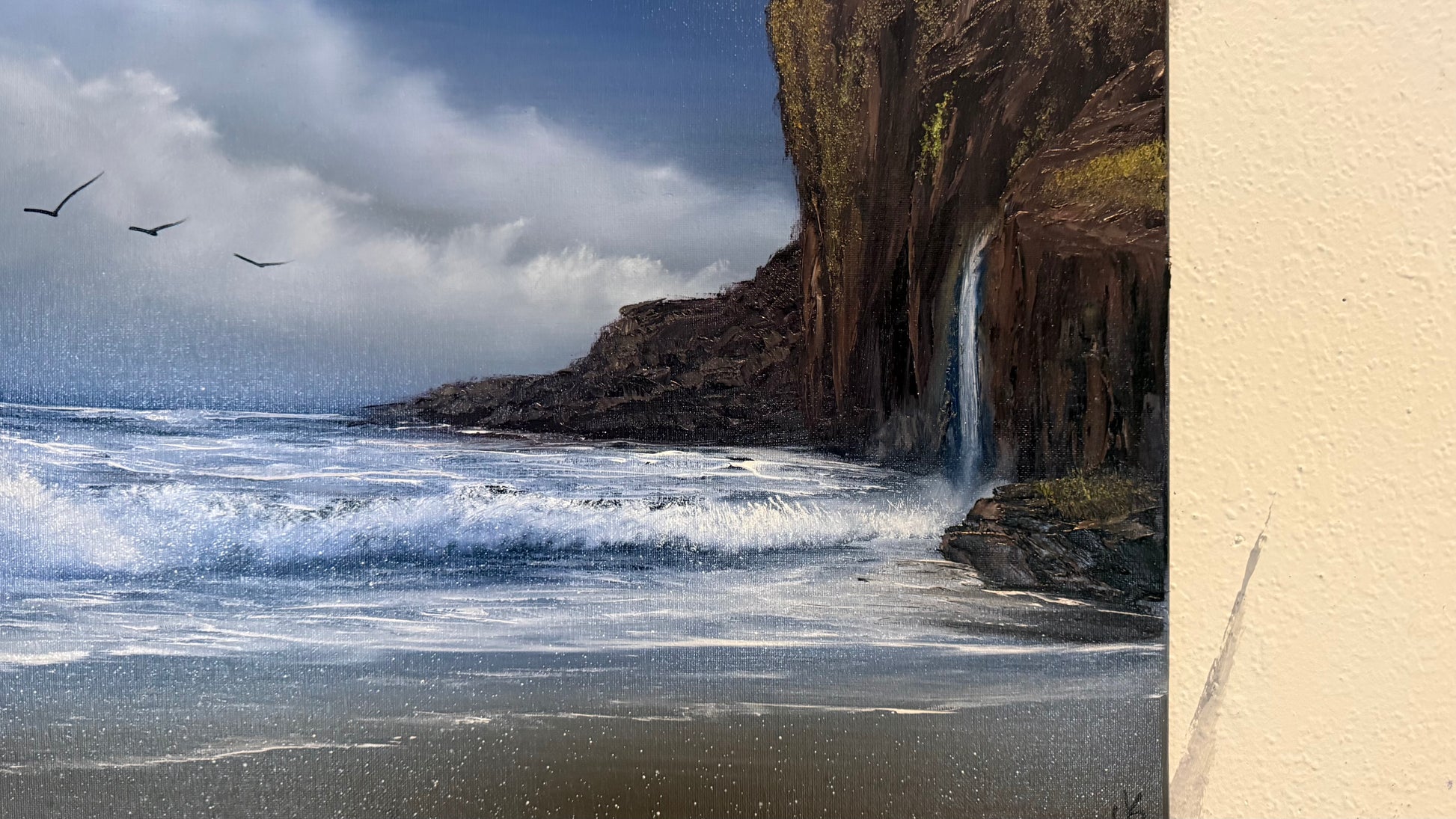 Painting #2235 - 16x20" Canvas - Coastal Waterfall Seascape painted 1-14-26