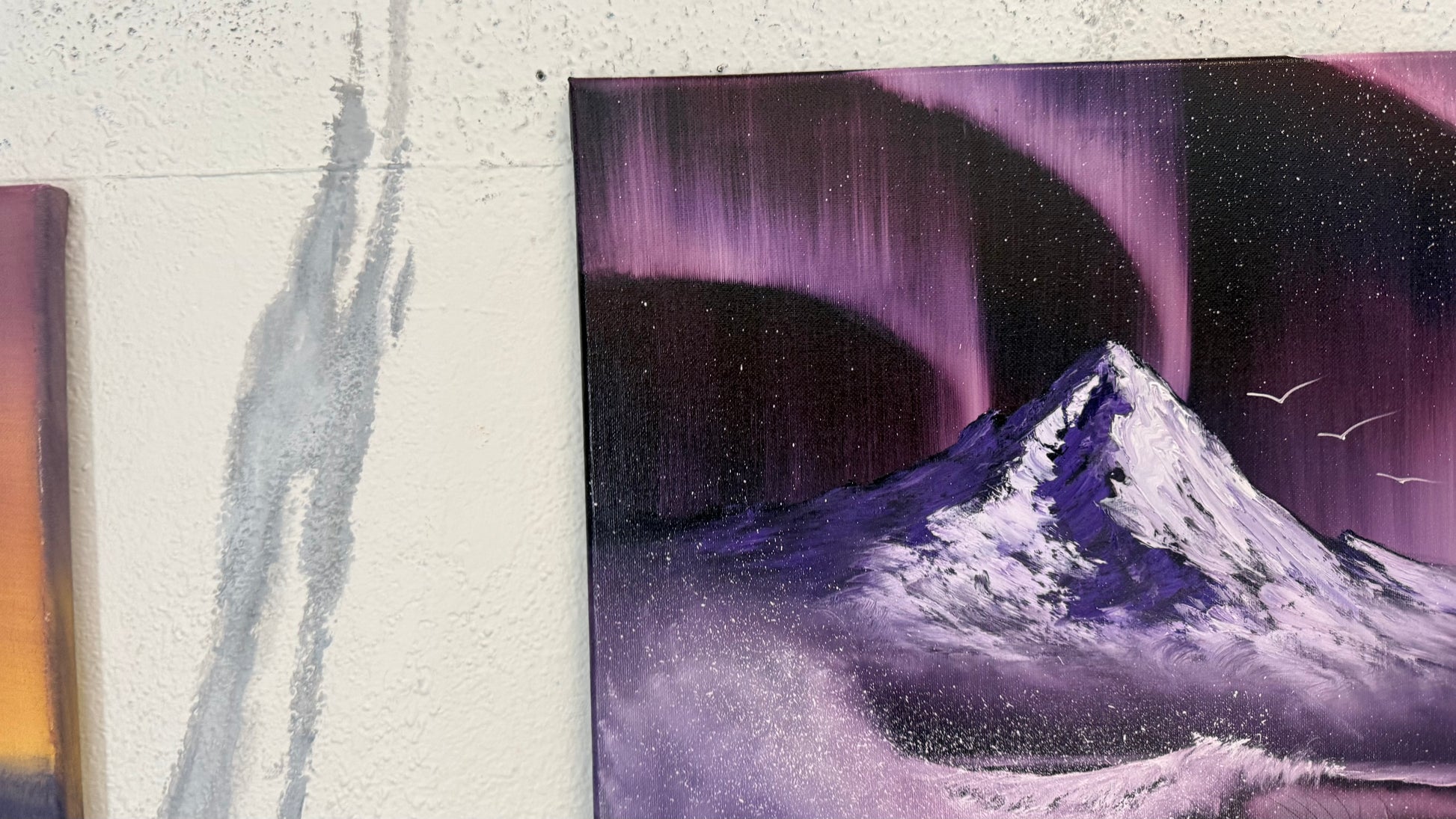 Painting #2256 - 16x20" Canvas - Aurora Mountain Seascape painted 1-25-26