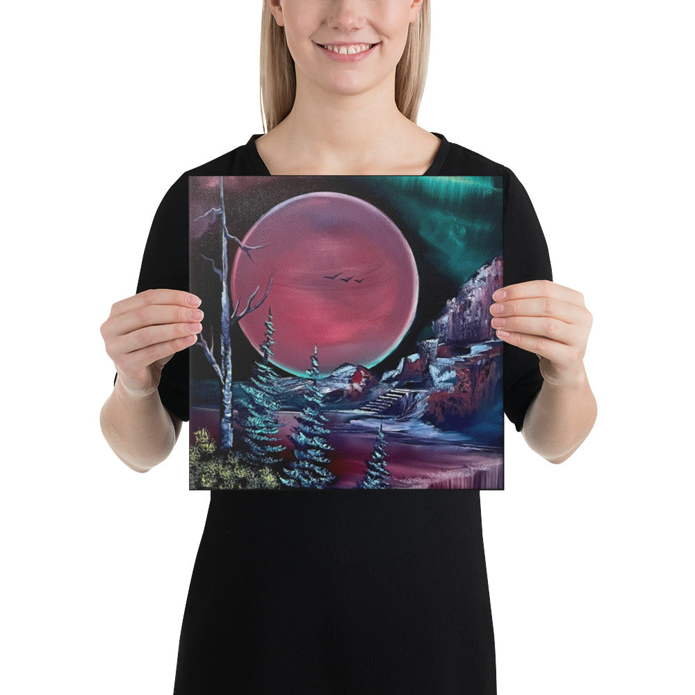 Canvas Print - Crimson Waterfall Full Moon Landscape by PaintWithJosh