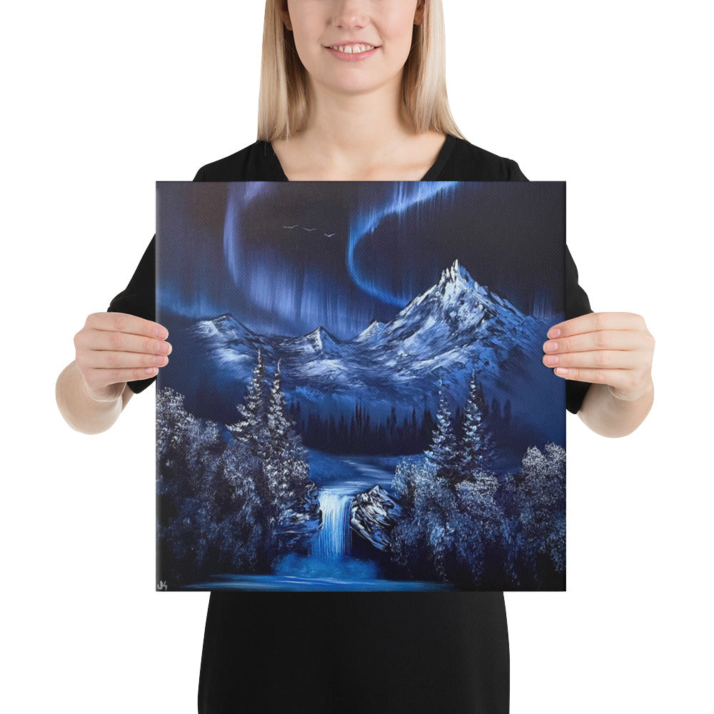 Canvas Print - Limited Edition - Sapphire Aurora - Alaskan Winter Waterfall Northern Lights Landscape by PaintWithJosh - Paint With Josh
