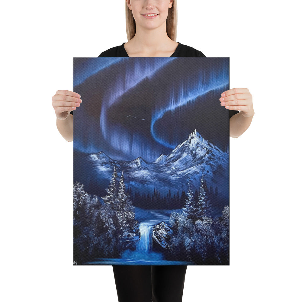 Canvas Print - Limited Edition - Sapphire Aurora - Alaskan Winter Waterfall Northern Lights Landscape by PaintWithJosh