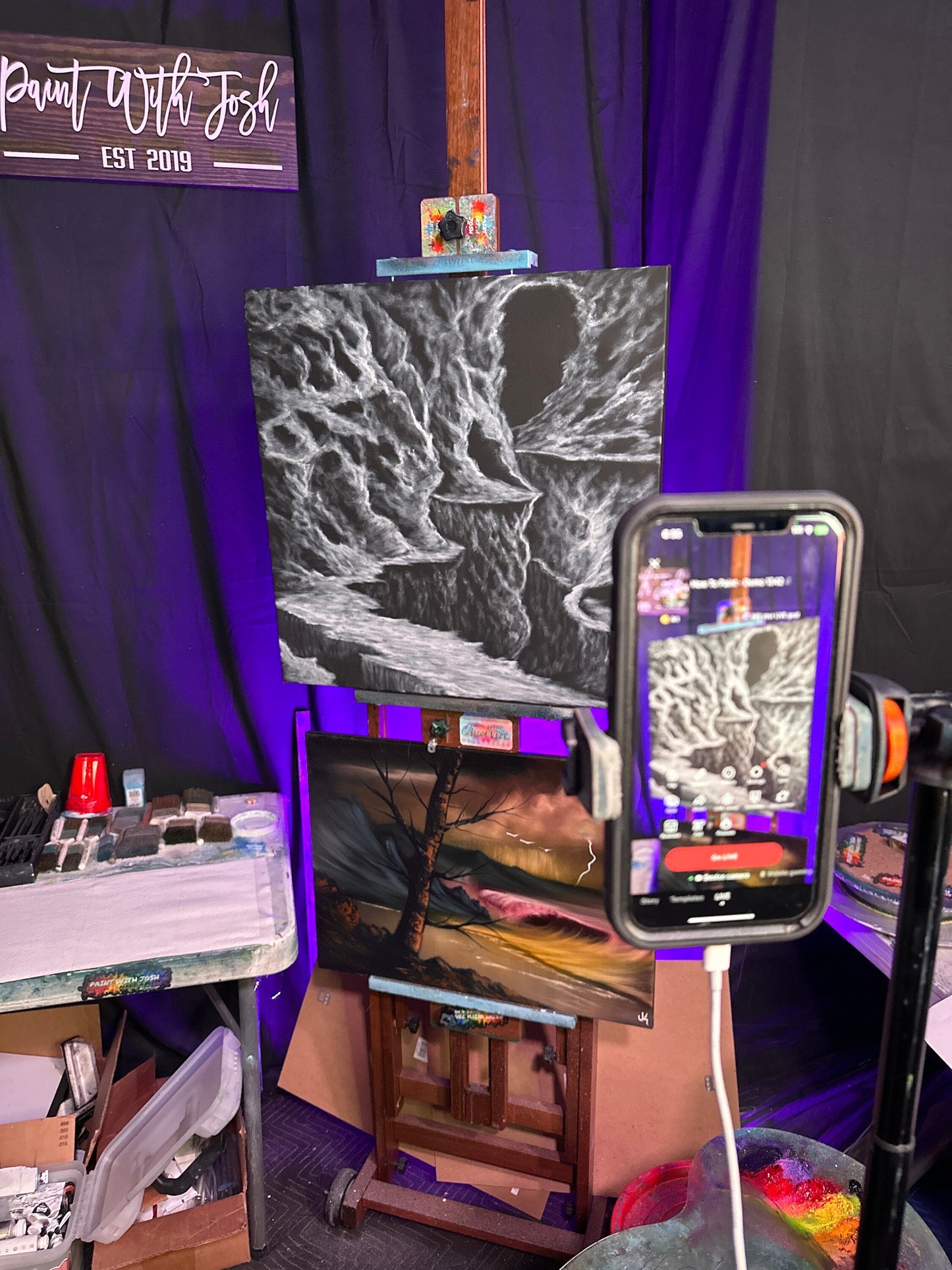 Painting 1344 - 24x24" Pro Series Canvas Cave Landscape Live on TikTok 6/15/24 by PaintWithJosh