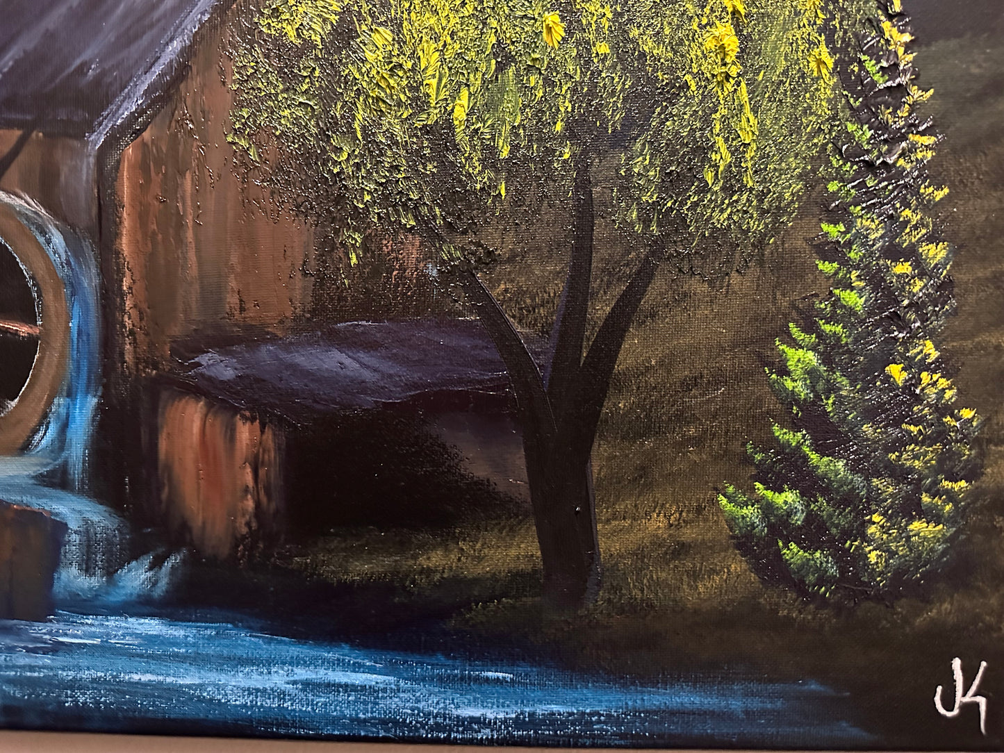 Painting 1363 - 16x20" Canvas - Old Mill Water Wheel painted Live on TikTok on 6/27/24 by PaintWithJosh