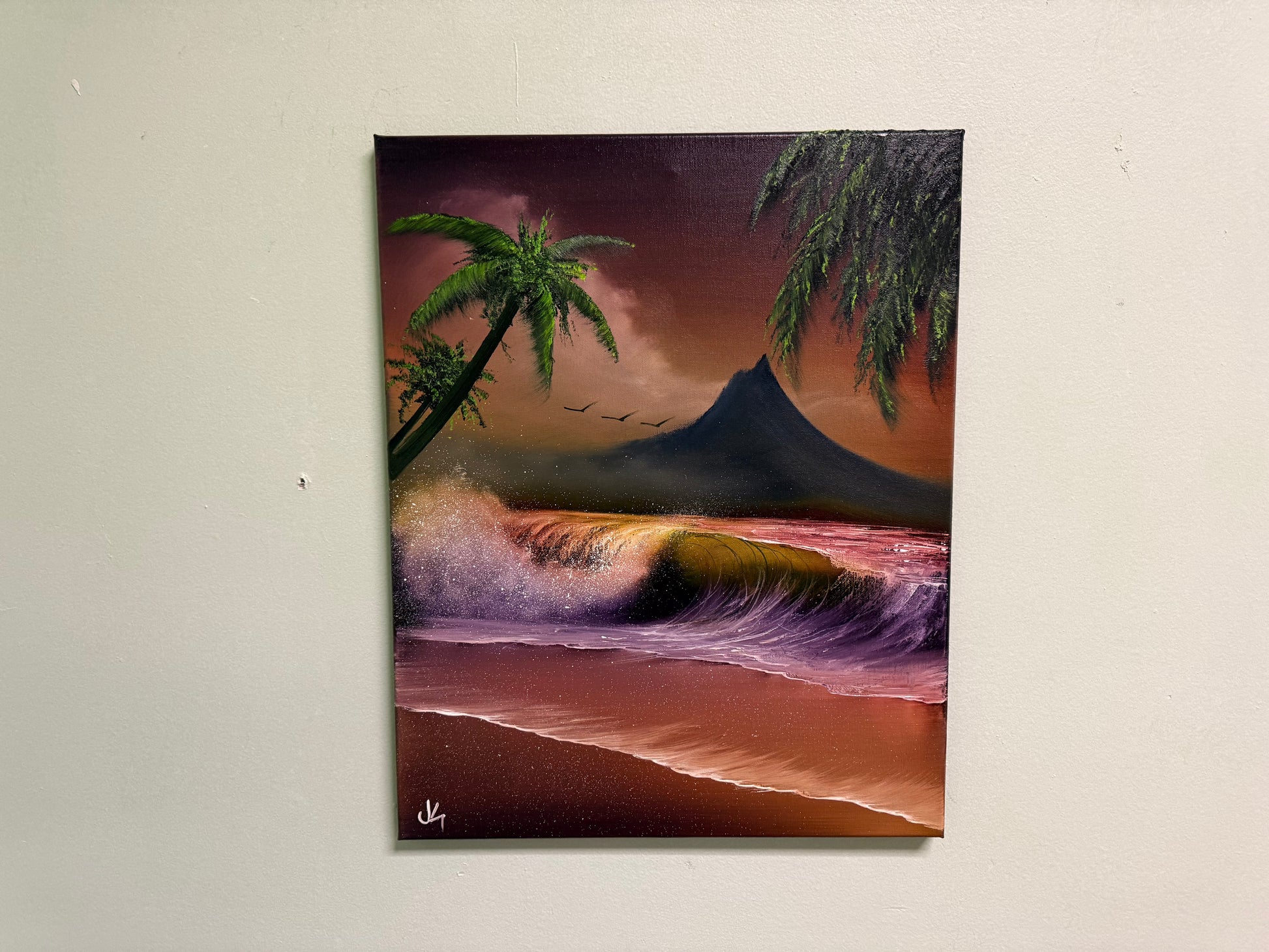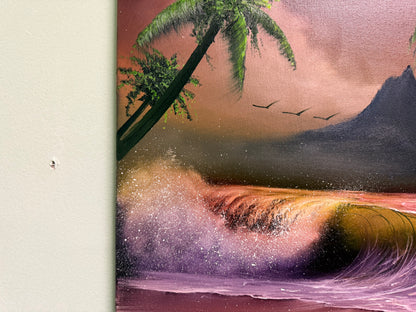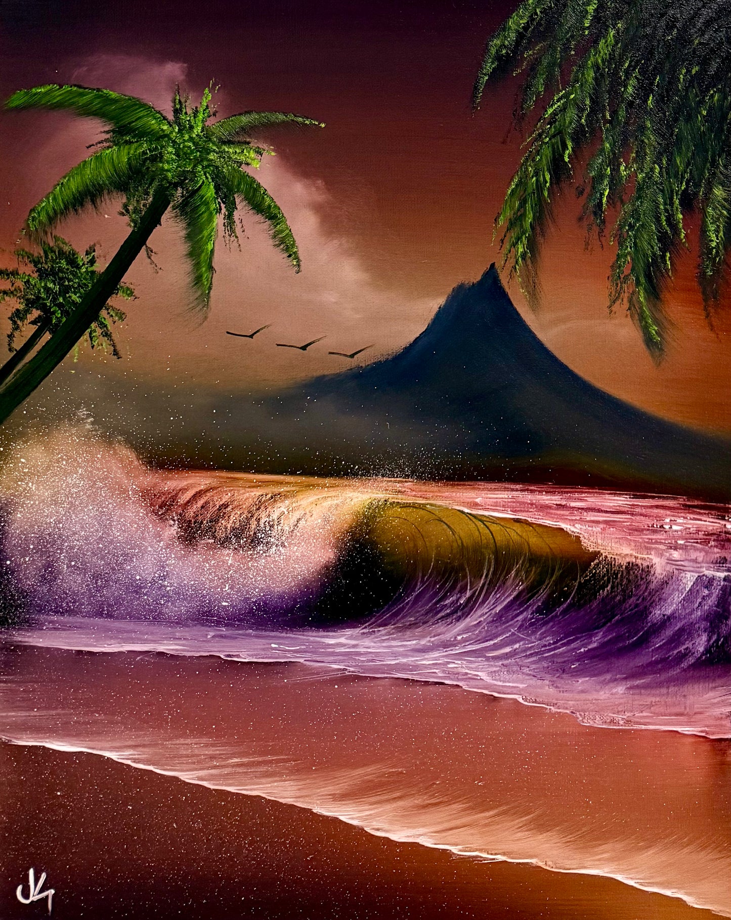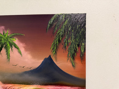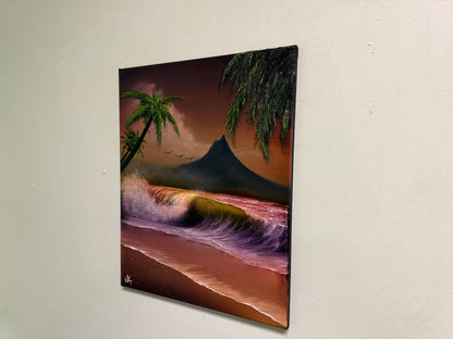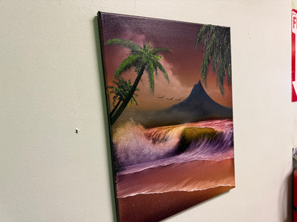 Painting #1789- 16x20" Canvas - Volcano Seascape painted 4-9-25
