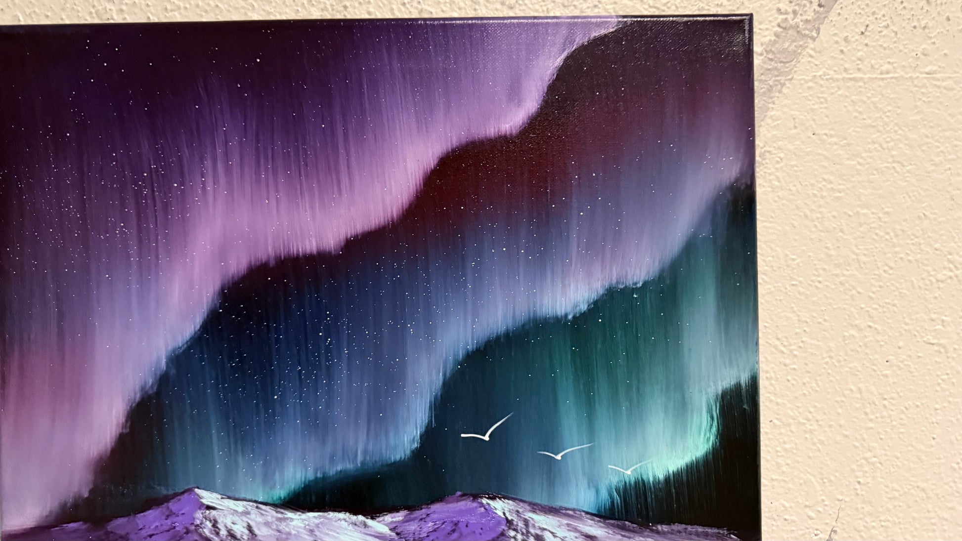 Painting #2185 - 16x20" Canvas - Aurora Mountain Landscape painted 12-13-25