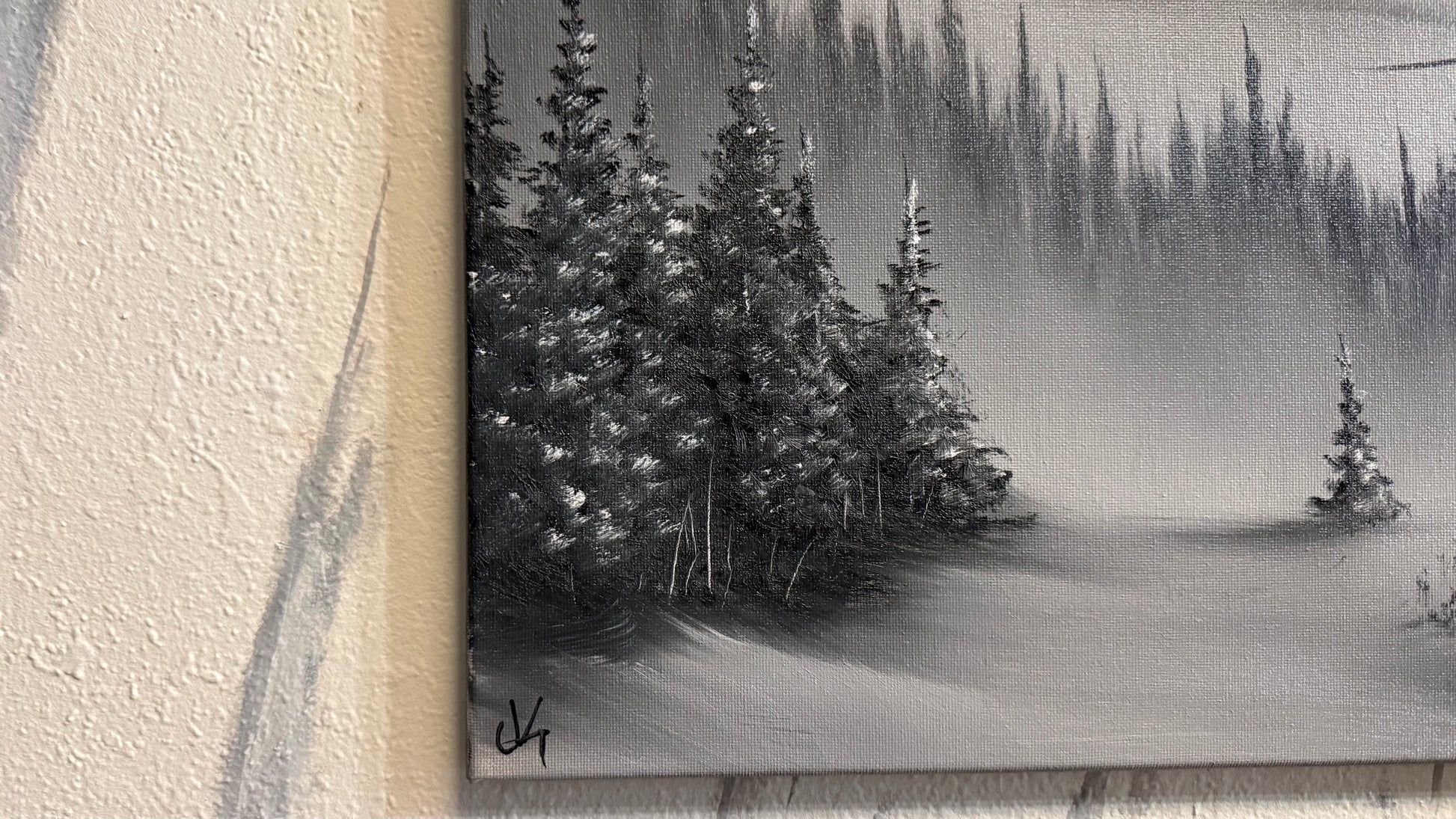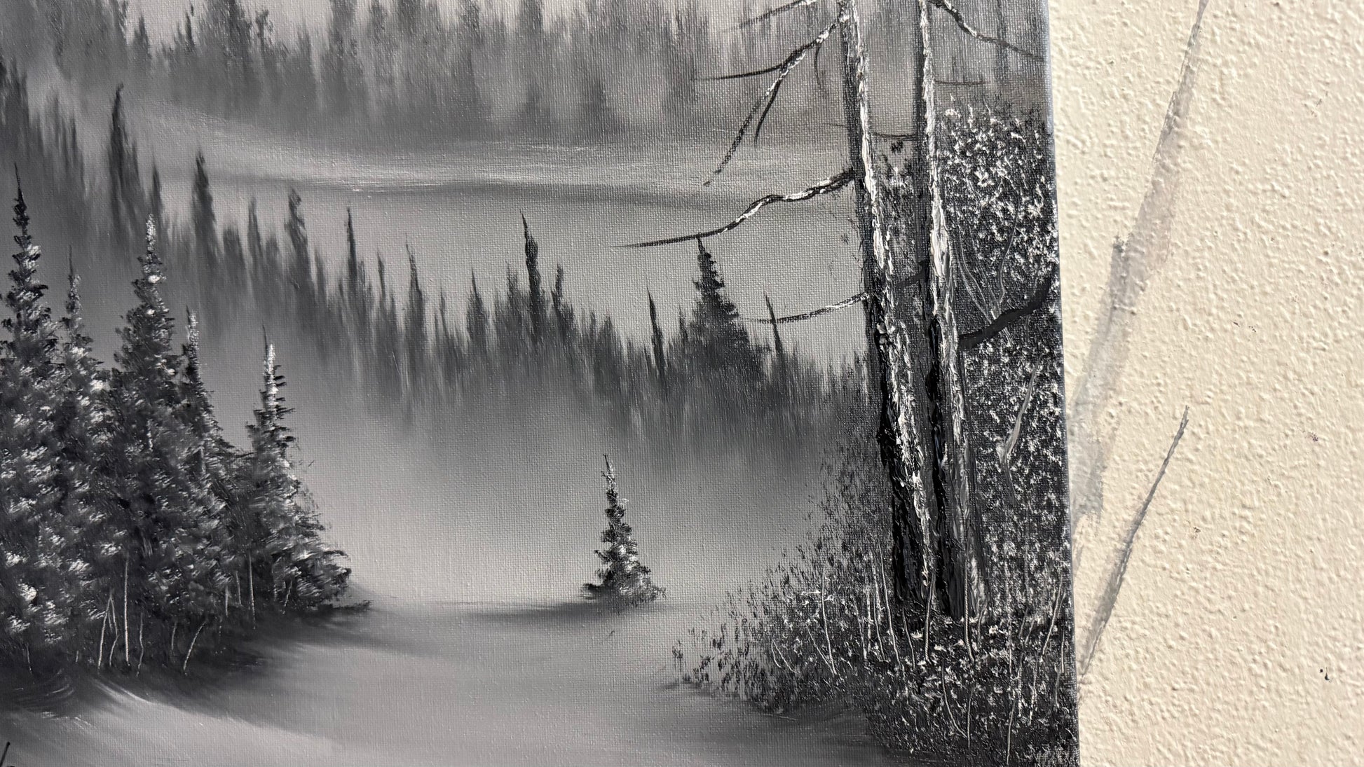 Painting #2247 - 18x24" Canvas - Black and White Mountain Landscape painted 1-19-26