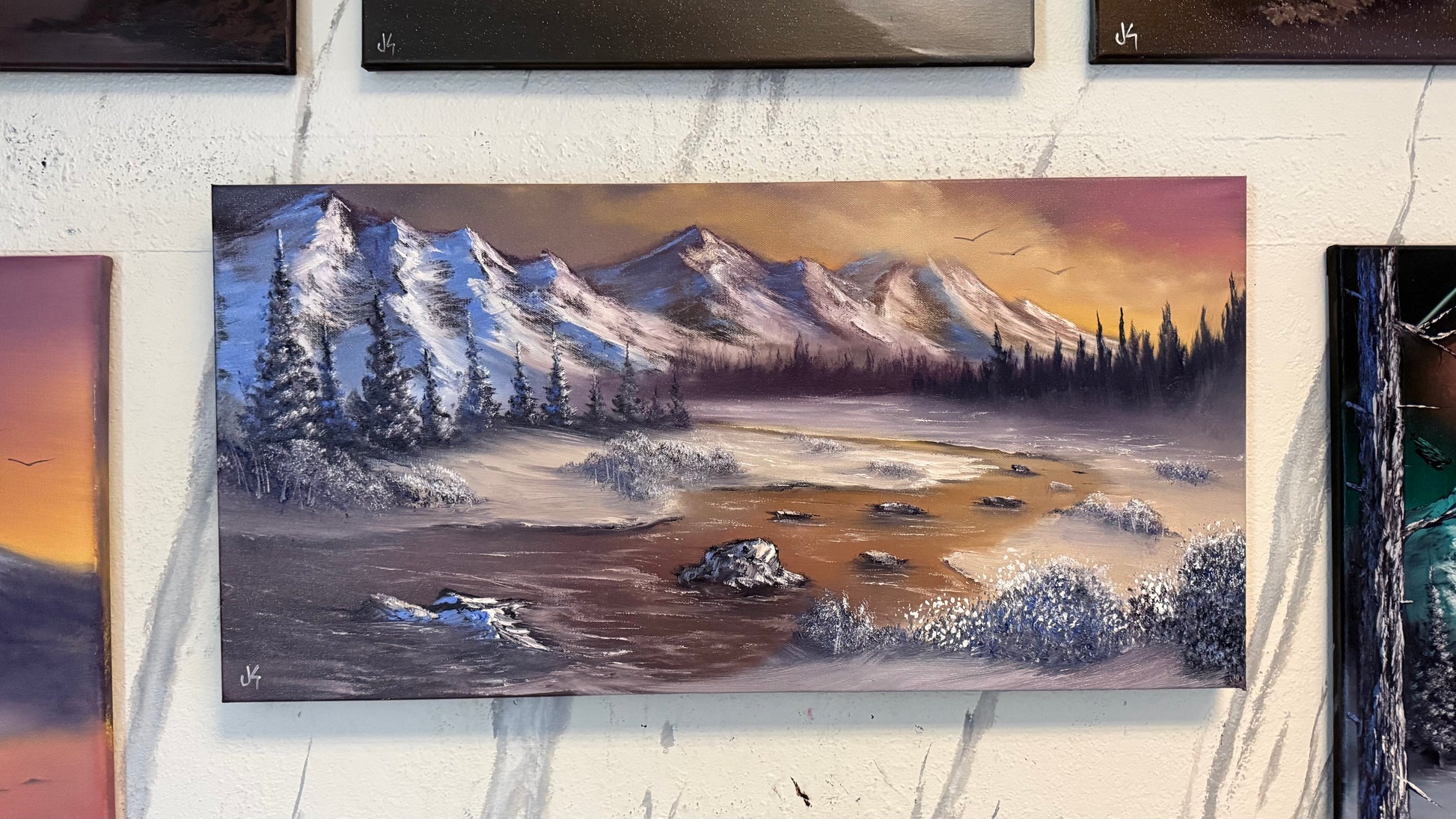 Painting #2260 - 15x30" Pro Series Canvas - Mountain River Landscape painted 1-29-26