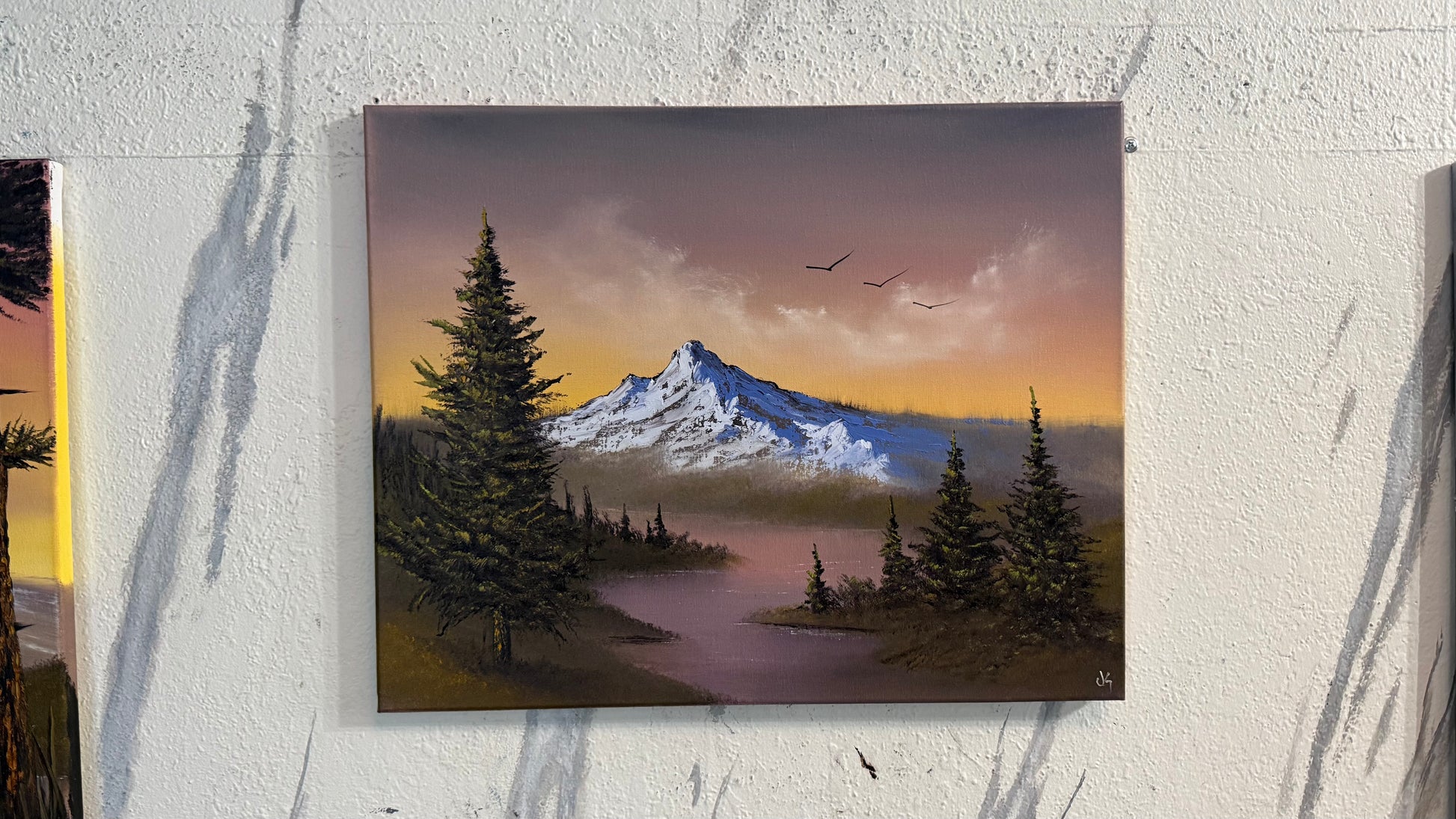Painting #2389 - 16x20" Canvas - Sunset Mountain River Landscape painted 4-14-26