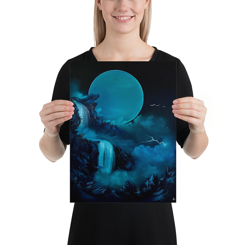 Poster Print - Full Moon Blue Waterfall Landscape by PaintWithJosh - Paint With Josh